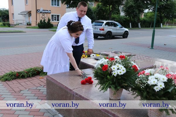 В честь Дня Независимости Республики Беларусь молодожены возложили цветы к памятнику в Вороново