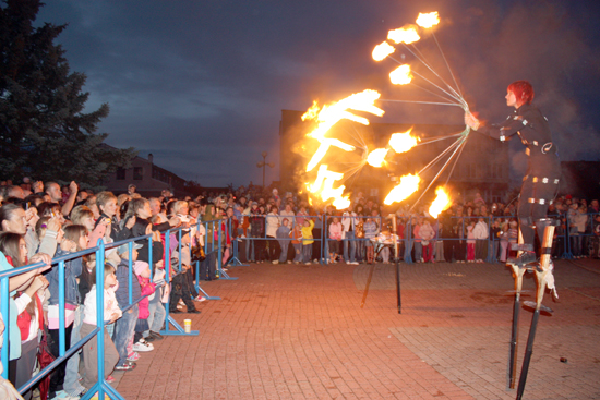 Вечером жителей и гостей Вороново ожидала центральная площадь, где должно было состояться музыкальное феерическое шоу певицы Влады, театрализованное шоу огня и ставшая уже всенародной акция «Споем гимн вместе!». Устроители боялись только одного, что дождь сорвет все планы, но к 8 часам вечера небо просветлело. На площади собралось много народа, и, казалось, все вокруг замерло в ожидании. И оно оправдалось с первыми звуками песни молодой и талантливой певицы Влады, а уж когда появился на сцене баянист-виртуоз Павел Невмержицкий, площадь оживилась еще больше. Зажигательные песни, ритмичные танцы и мастерская игра на баяне поразили воображение вороновцев. Время пролетело незаметно, и вот уже над Вороново сгустились сумерки — подошло время огненного шоу. Молодые люди на ходулях, светящиеся разноцветными огнями, в белых одеждах, ловко и умело жонглировали огнем. В их руках появлялись то затейливые огненные фигуры, то огромный куб, то колесо. Казалось, вот-вот что-то сорвется и улетит в толпу, но мастерство этих укротителей огненной стихии просто поражало. Зрители на площади то замирали в оцепенении, то взрывали площадь бурными овациями. Это было незабываемо!