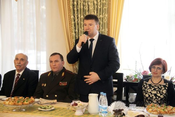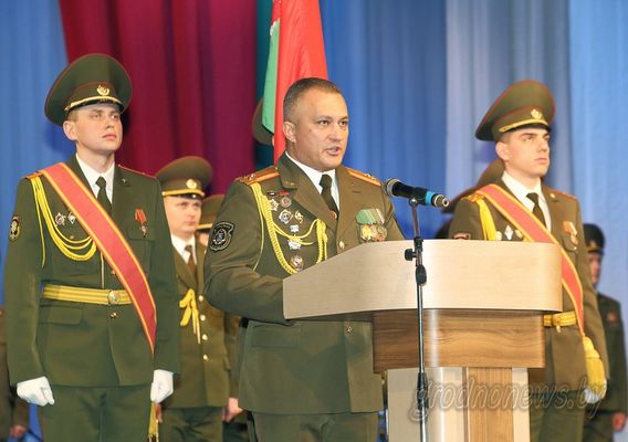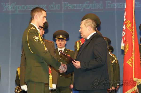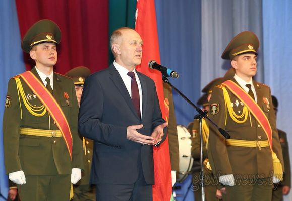 Он поздравил всех с поистине всенародным праздником защитников Отечества, особые слова благодарности высказал в адрес ветеранов Великой Отечественной войны и Вооруженных сил, пожелал им крепкого здоровья и долголетия. Он также вручил отличникам боевой подготовки грамоты областного исполнительного комитета и Министра обороны. Грамоты благодарственные письма Гродненского городского исполнительного комитета вручил его председатель Мечислав Гой. Первый заместитель командующего войсками Западного оперативного командования полковник Руслан Косыгин вручил ценный подарок и погоны с очередным воинским званием офицерам Гродненского гарнизона.