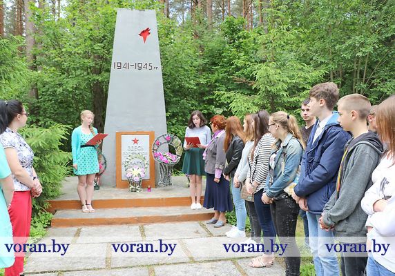 О трагических событиях 1942-го, когда на окраине Вороново были расстреляны около 2 тысяч евреев, молодежь узнала из театрализованной композиции во время посещения могилы жертв фашизма.