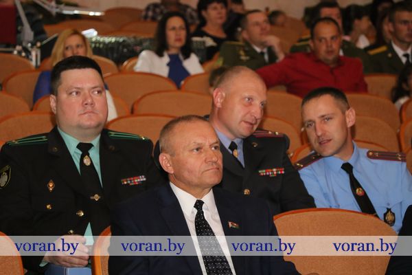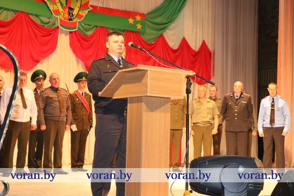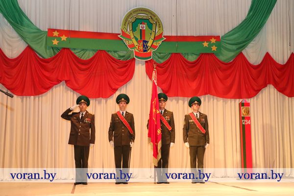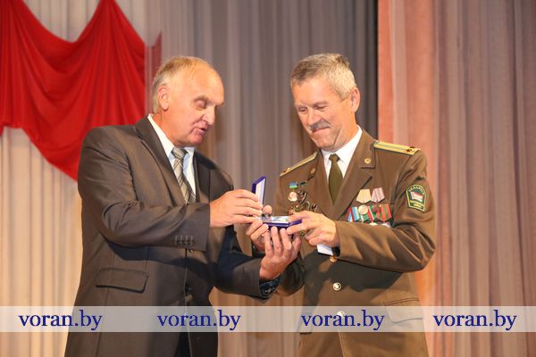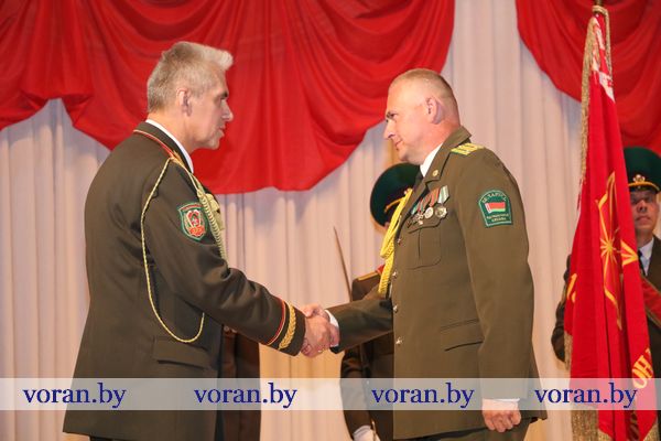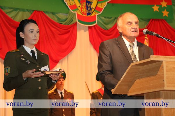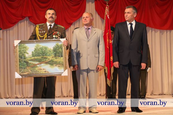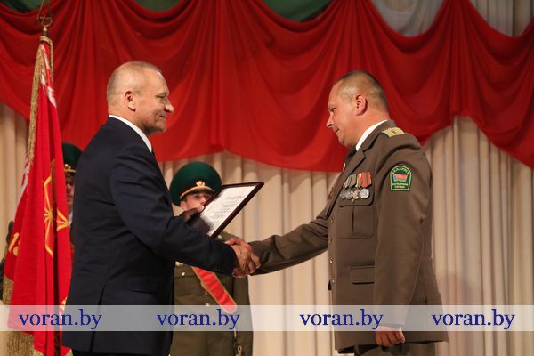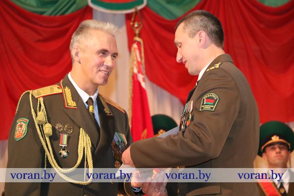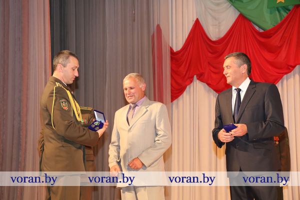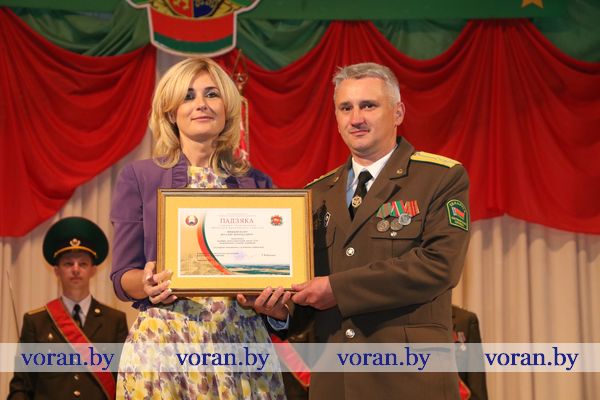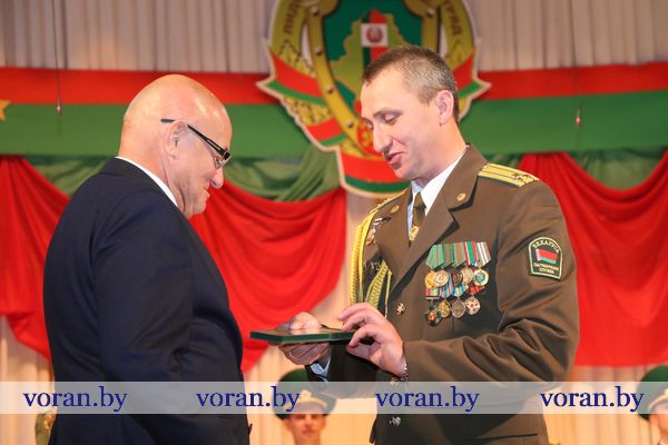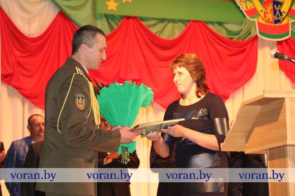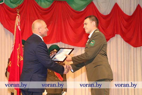 Более двух сотен военнослужащих накануне торжества получили от командования поощрения в виде грамот, благодарностей, отличительных знаков, очередных воинских званий. Многие во время торжества поднимались на сцену Дворца культуры за заслуженными наградами и медалями. В их числе стражи границы, несущие службу на вороновской земле, — контролер опк «Бенякони-1» Валерий Миковоз (медаль «За безупречную службу» II степени), старший техник опк «Бенякони-2» Максим Манейко (медаль «За безупречную службу» III степени), контролер опк «Дотишки» Оксана Лукашунас (нагрудный знак «Отличник органов пограничной службы» II степени). Благодарность председателя Вороновского райисполкома объявлена начальнику пограничной заставы «Дотишки» Вячеславу Стефановскому и старшему технику пограничной заставы «Бенякони» Виталию Карачуну, которых на торжестве приветствовал председатель Вороновского районного Совета депутатов Виктор Роик. Почетную грамоту объединенной профсоюзной организации органов пограничной службы Республики Беларусь вручил ее председатель Александр Войтеховский кочегару пограничной заставы «Дотишки» Валерию Михалевичу.