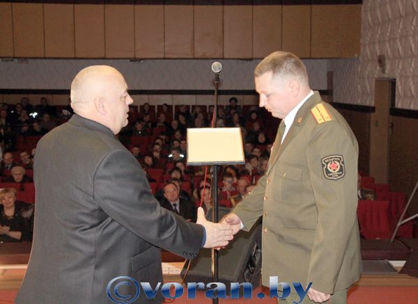 С поздравительными словами к собравшимся обратились исполняющий обязанности военного комиссара Вороновского комиссариата А.Ю. Гайжевский, начальник отдела культуры райисполкома Е.М. Ястремская. Самые активные члены Вороновской районной организации ОО «Белорусский союз офицеров» были награждены памятным знаком «20 лет Белорусскому союзу офицеров». Почетную миссию выполнил председатель организации Т.В. Кузьмицкий.