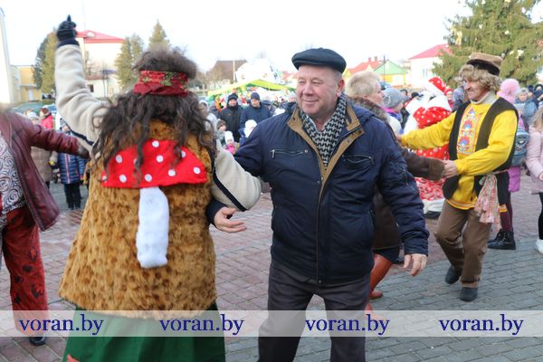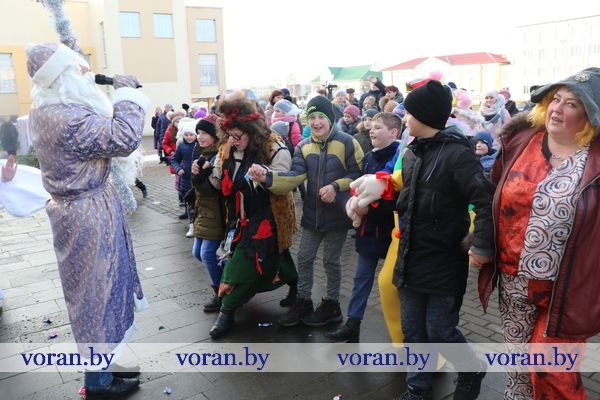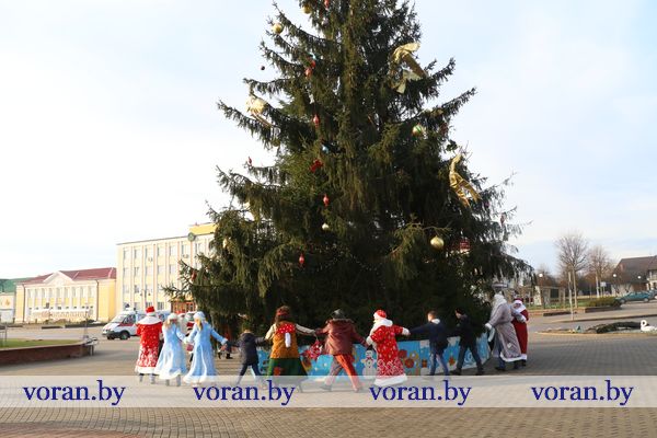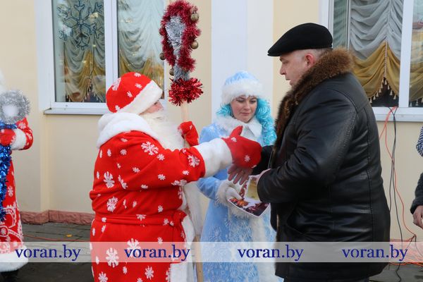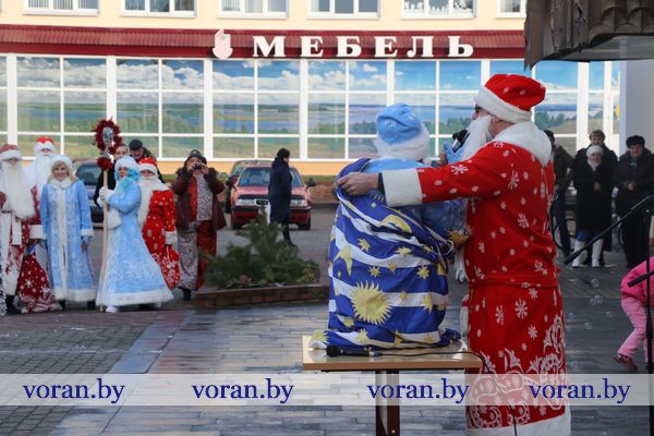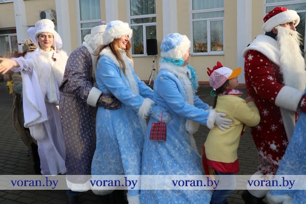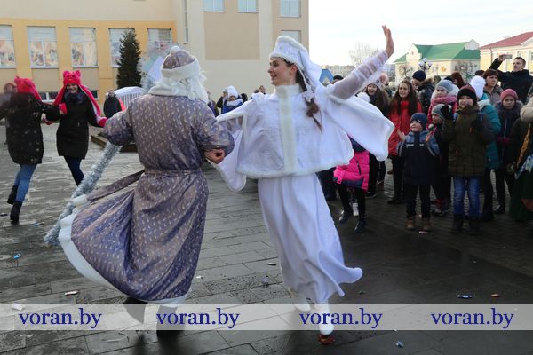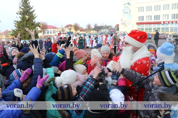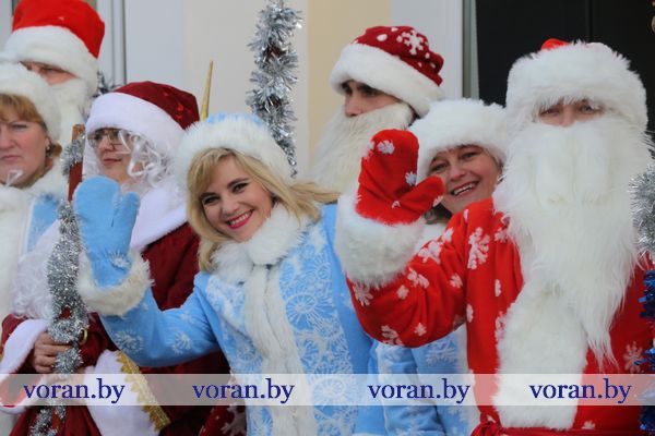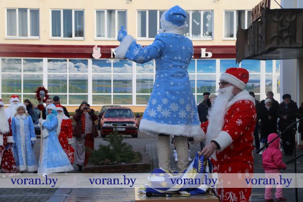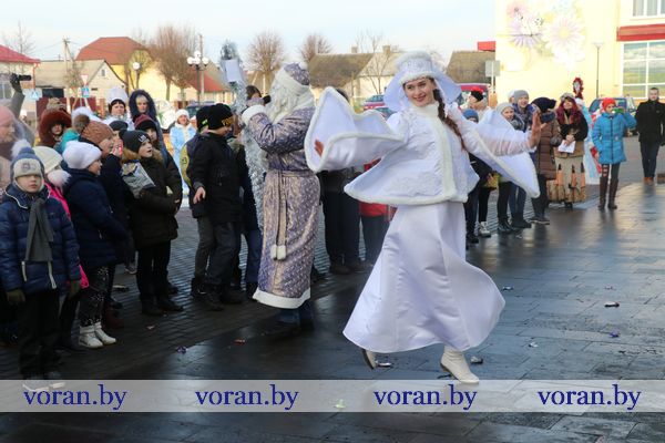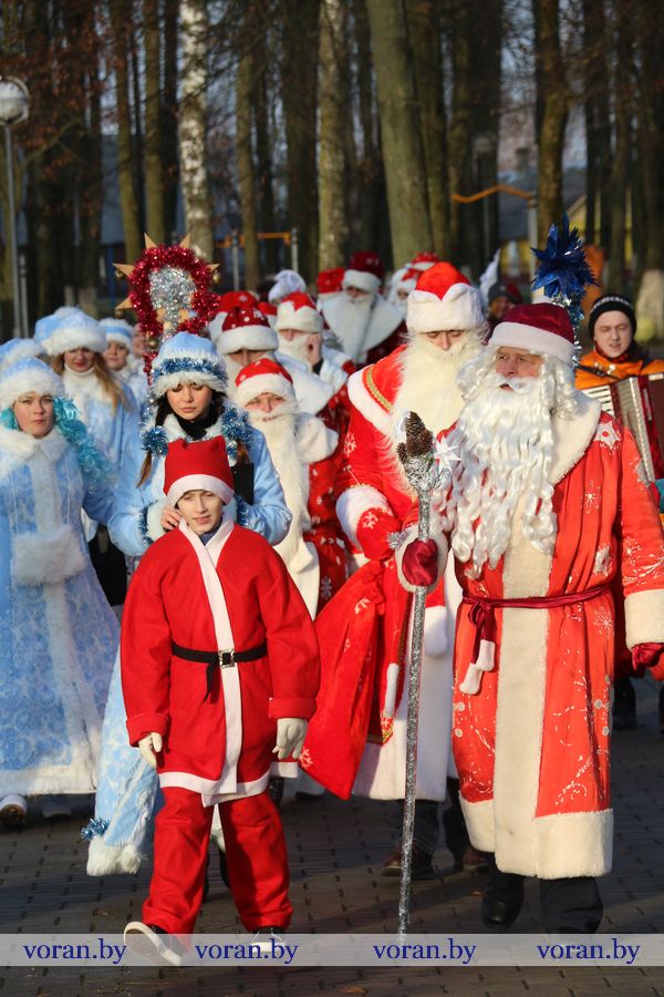 Новый год настает… До всеми ожидаемого и чудесного момента вступления 2018 года в свои права остается всего лишь три с небольшим дня. Но уже сегодня, 28 декабря, сердца многих юных и взрослых вороновцев наполнились радостью и светлой верой в счастье, которое обязательно придет вместе с Новым годом. А подарили людям эту надежду Деды Морозы и Снегурочки, которые прибыли в райцентр из разных населенных пунктов Вороновщины на традиционную «Елку-Фест». Очень хотелось и верилось, что во время шествия 13 пар этих любимых новогодних героев и других сказочных персонажей по улицам райцентра, пойдет долгожданный снег… Но чуда не случилось. И пришлось Дедам Морозам и Снегурочкам проявить все свое мастерство, чтобы люди на центральной площади не скучали, а танцевали, пели и веселились. И с этой задачей они искусно справились.