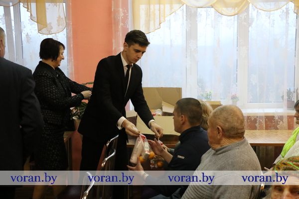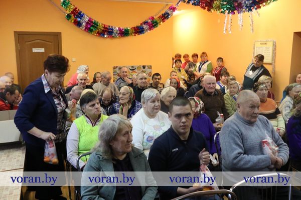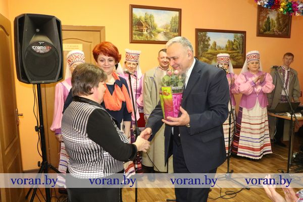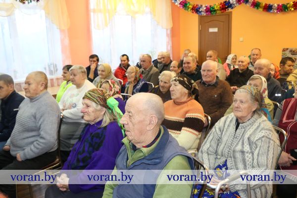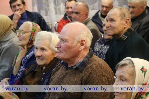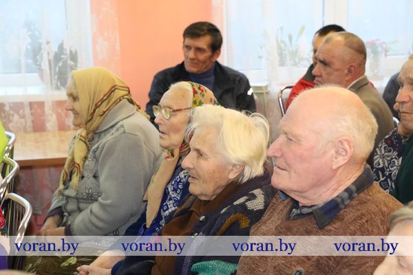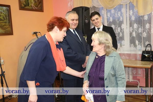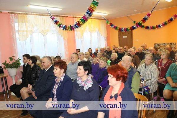 Крепкого здоровья, неиссякаемых сил, неугасаемой надежды в сердцах подопечным отделения пожелали председатель райисполкома Николай Розум, лидеры районного объединения профсоюзов и районной организации «Белорусский союз женщин» Елена Ястремская, совета ветеранов Нелли Пушненкова, директор ТЦСОН Антонина Эйсмонт, председатель местного сельисполкома Светлана Немеро. К искренним поздравлениям добавились подарки: ковровая дорожка — от райисполкома, сладости — от «Евроопта». И, конечно же, музыкальные номера. Тепло встречали бабушки и дедушки виртуоза-баяниста Андрея Ткачука. Вместе с Эдуардом Бутримом, народным ансамблем народной песни «Зараніца», трио «Радунскія хлопцы» они пели душевные всем знакомые песни.