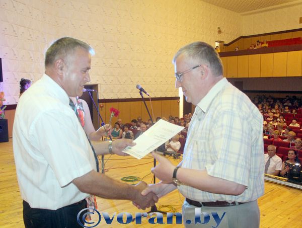 Насколько важна, ответственна и благородна профессия медицинских работников, открывая торжество, говорили председатель райисполкома Н.А. Розум, главный врач Вороновской ЦРБ А.В. Ануфриев и председатель профсоюза В.Я. Спетелюн. В любой профессиональный праздник принято отмечать лучших. Не отошли и в этот раз от традиции. Почетной грамотой управления здравоохранения награждены врач-эндокринолог Вороновской ЦРБ Т.Ф. Паневкина, врач-офтальмолог Радунской городской больницы Л.И. Имперович. Благодарность начальника управления здравоохранения объявлена медработникам центральной районной больницы: фельдшеру выездной бригады отделения скорой медицинской помощи А.И. Копть, рентгенолаборанту рентгенкабинета Л.А. Петюль и старшей медсестре отделения анестезиологии и реанимации М.В. Метелице. Звучали со сцены и имена тех, кто был удостоен Почетной грамоты и Грамоты райисполкома, Благодарственного письма райсовета депутатов, кому была объявлена Благодарность председателя райисполкома, а также тех, кто, кроме профессионализма, проявил спортивные и творческие способности.