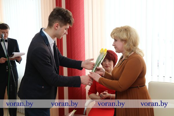 Прекрасные слова звучали в адрес всех присутствующих на приеме представительниц прекрасной половины. Медицинская сестра Вороновской ЦРБ С.А. Латышевич начала отсчет своей трудовой деятельности в апреле 1994 года. Светлана Александровна — грамотный специалист и прекрасная женщина. За добросовестный и многолетний труд неоднократно поощрялась со стороны администрации лечебного заведения. За значительный вклад в развитие сестринского дела в 2017 году ей объявлена благодарность начальника управления здравоохранения Гродненского облисполкома. Она доброжелательна к людям, трудолюбива.