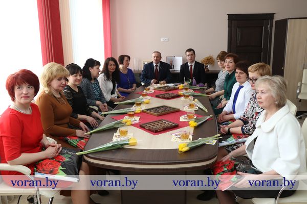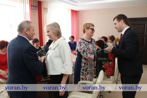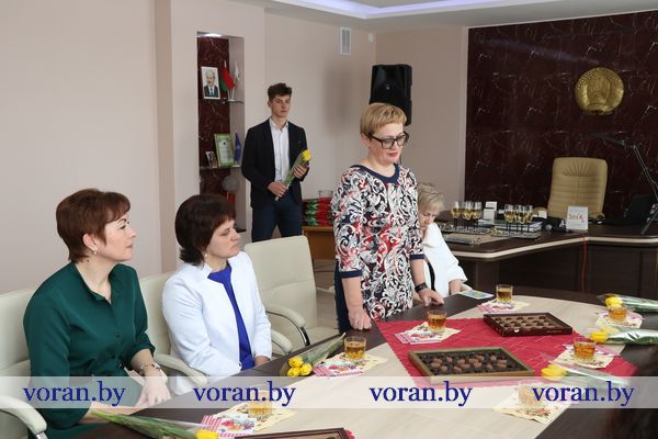 Сегодня кабинет председателя райисполкома был похож на цветущую поляну, переполненную чудесными весенними цветами. Девять очаровательных женщин, лучших представительниц разных сфер деятельности, наполнили его светом своей красоты. Заместитель председателя райисполкома Андрей Андреевич Карпович поздравил милых женщин с весенним праздником, подчеркнув особый вклад в развитие Вороновщины каждой из присутствующих дам.