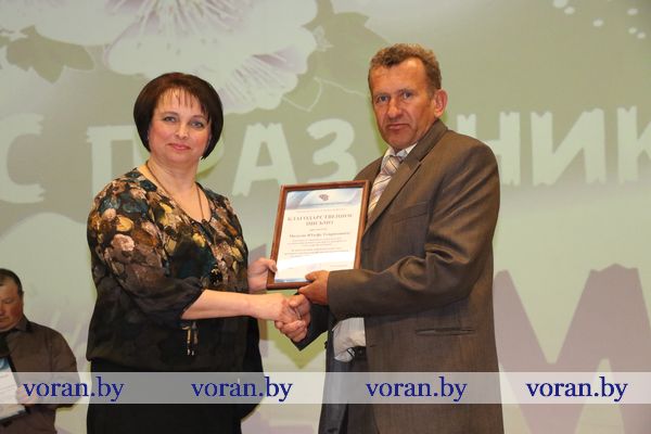 Искренне пожелал Мира, Счастья, ДОБРА председатель районного исполнительного комитета Николай Розум. По доброй сложившейся традиции на праздниках принято лучших работников привечать не только словами благодарности, но и заслуженными наградами. За значительный вклад в социально-экономическое развитие Вороновского района и в связи с Праздником труда Почетной грамотой райисполкома награжден ветеран труда, кавалер ордена Трудовой Славы I, II и III степени Иван Куровский. Благодарность председателя райисполкома объявлена мастеру производственного обучения Вороновского государственного колледжа сельскохозяйственного производства Чеславу Боландю, прорабу дочернего унитарного предприятия Вороновского предприятия мелиоративных систем Казимиру Крисинелю, начальнику отдела промышленности Вороновского филиала Гродненского облпотребобщества Ирине Поляковой, лаборанту диагностической лаборатории государственного учреждения «Вороновская ветеринарная станция» Софии Францкевич и технику производственно-технической группы Вороновкого района электрических сетей Нине Янковской.