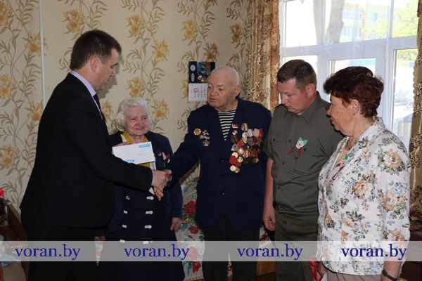 В преддверии 9 Мая такие слова звучали в адрес ветеранов Великой Отечественной — Татьяны Кузьминичны Бобиной, Степана Аксентьевича Жука, Веры Филипповны Тимофеевой, Ивана Адамовича Носаля, Владимира Иосифовича Мармыша и Ивана Ивковича Голощапенко. Их говорили, навещая солдат Победы в Вороново, Бастунах, Старых Смильгинях, Погородно и Довгялах, заместитель председателя райисполкома Андрей Карпович, военный комиссар Вороновского района подполковник Александр Гайжевский, председатели районного объединения профсоюзов Елена Ястремская, районного совета ветеранов Нелли Пушненкова и первый секретарь РК ОО «БРСМ» Наталья Метелица.