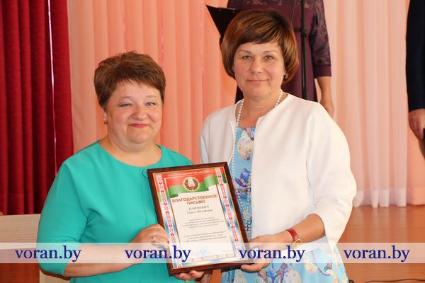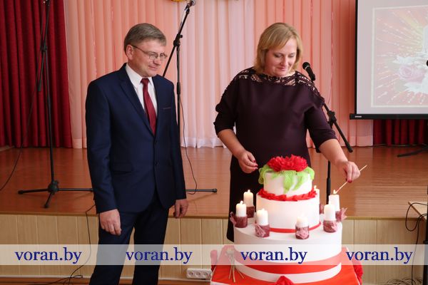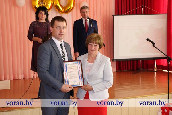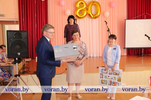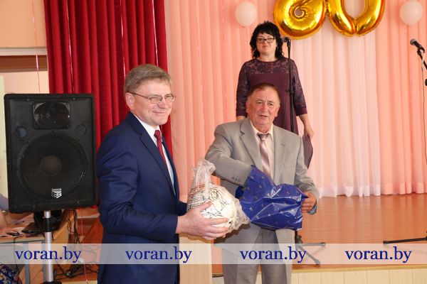 О том, насколько сильны традиции в этом учреждении образования и как они сберегаются, поделилась бывший учитель русского языка и литературы Марина Николаевна Белоокая. С ветераном педагогического труда согласились гости — председатель райсовета депутатов Елена Яновна Ганевич, заместитель председателя райисполкома Андрей Андреевич Карпович и исполняющий обязанности начальника отдела образования, спорта и туризма Павел Викторович Тарчинский. Поздравив коллектив и учащихся с праздником, они вручили награды. Почетной грамоты райисполкома удостоена учитель немецкого языка Антонина Ивановна Родион, Благодарственного письма райсовета депутатов — заместитель директора по учебно-воспитательной работе Тереса Юзефовна Климович. Почетная грамота отдела образования, спорта и туризма была вручена учителю русского языка и литературы Лилии Николаевне Турчин, Грамоты — повару Ирине Людвиковне Левон, уборщицам служебных помещений Дануте Юзефовне Будревич и Галине Валерьяновне Бинкевич. Т.В. Тарчинский вручил директору школы С.С. Корде сертификат на получение персонального компьютера, заместитель директора местного сельхозпредприятия по идеологической работе Н.В. Ракутина — принтер. Приготовили подарки школе и выпускники: кроме спортинвентаря, были цветы любимым учителям, искренние и от всего сердца музыкальные номера.