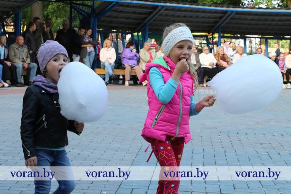 На летней эстраде в парке райцентра праздник сначала открыл летний дождик, а продолжил «звездный». От высоких нот театра заслуженной артистки Республики Беларусь Ирины Дорофеевой тучи скрылись с небосклона, а от аплодисментов вороновских постоянных зрителей стало гораздо теплее. Не хватало, правда, движения на танцполе — ожидаемой организаторами молодежной публики было маловато. Но ведь молодость — возможность лишь душевных сил. И это доказали те отдыхающие, кому немножко за… Группа «Красотки» и известный ведущий и певец Андрей Колосов зажигали по полной. Репертуар исполнителей включал хиты разных годов.