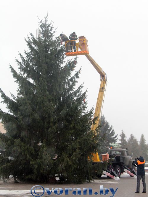 12 декабря на площади г.п. Вороново коммунальники установили елку. Тринадцатиметровая новогодняя красавица в этом году засияла по-новому: для ее украшения приобретены игрушки и световые гирлянды.