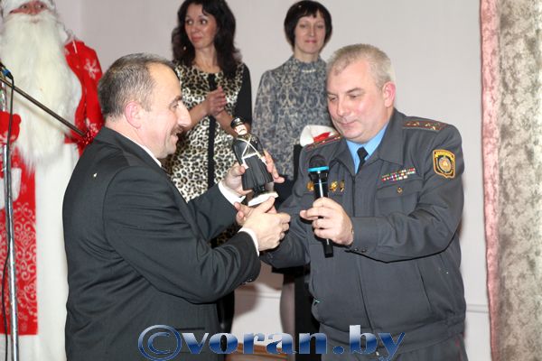 Новогодние веселые и зажигательные песни для воспитанников школы-интерната и всех присутствующих исполнили учащиеся Лидского государственного музыкального колледжа. В светлый и радостный праздник приготовили подарки для ребят и давние их друзья. Приятной неожиданностью для директора школы-интерната Виктора Викторовича Михаловского стало вручение заместителем начальника УВД облисполкома, начальником управления идеологической работы и кадрового обеспечения, полковником милиции Германом Геннадьевичем Олейниковым сувенира в виде городского городового за поддержание порядка в учреждении. Мультимедийный проектор, подаренный председателем областного комитета профсоюза АПК Иваном Станиславовичем Олизаровичем, педагоги и воспитатели будут использовать на занятиях и классных часах. Генеральный директор ОАО «Гродненский мясокомбинат» Анатолий Георгиевич Гришук пригласил и воспитанников школы-интерната, и их учителей посетить на каникулах агротуристический комплекс «Коробчицы». Исполнили заветное желание детей представители БФСО «Динамо» — подарили лыжи. От души с наступающим Новым годом поздравили ребят и начальник отдела образования, спорта и туризма райисполкома Е.Я. Ганевич, представители РОВД во главе с начальником В.В. Стефановичем, ОПС «Вороново», редактор районной газеты Т.П. Дудко, председатель Радунского поссовета С.В. Жук. Пожалуй, самым трогательным моментом праздника стало выступление мамы пятерых детей Натальи Маковецкой из Дятлово. Слова благодарности она выразила и педагогам, и директору за то, что они достойно воспитывают трех ее девочек и что дети находятся под надежной защитой.