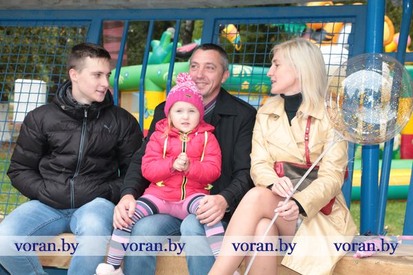 Как оказалось, игра интересна не только детям, но и нам, взрослым. А совместное времяпрепровождение, конечно, сплачивает. Прекрасно организованный праздник, очень насыщенная программа, настроение отличное. Правда, погода на этот раз подкачала: холодно, дождливо, ветрено. Безусловно, солнце добавило бы красок «Карнавалу весялосці».