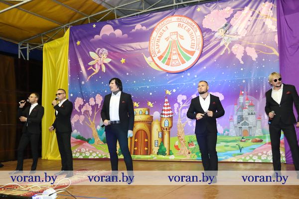 Буквально взорвали вечернее Вороново «Беларусы». Сильные мужские голоса, знакомые мелодии и уйма обаяния сделали концертную программу незабываемой.