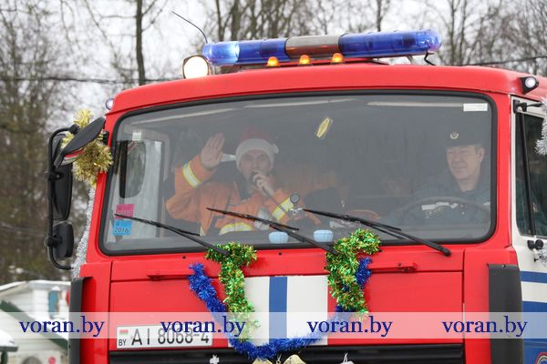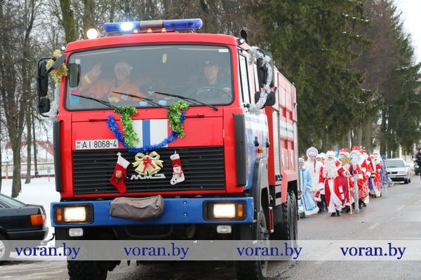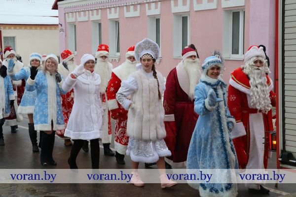 Декабрь снова начудил с погодой. Вместо белого пушистого снега “наколдовал” дождь и слякоть. Однако главные новогодние герои не побоялись растаять. Десять пар Дедов Морозов и Снегурочек в сопровождении сказочных персонажей шествовали в приподнятом настроении по центру Вороново, приветствуя его жителей и гостей и приближая любимый праздник. А путь к главной елке района им “указывал” новогодний экипаж спасателей-волшебников.