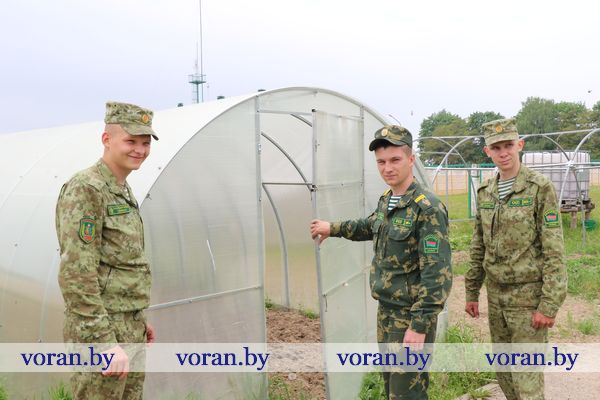 Старшина на заставе — также немаловажное звено. В его ведении — войсковое хозяйство, поддержание порядка в подразделении и решение многих бытовых вопросов. У военнослужащих все эти функции принято называть тыловым обеспечением. Недавно на эту должность пришел ивьевчанин Александр Гринюк (на снимке в центре). После срочной службы на этой заставе он перевелся на контрактную. И здесь полученное высшее образование агронома пограничнику очень даже пригодилось. На территории заставы есть огород, которым он также будет заниматься. Участок земли небольшой, но урожай с него вполне может обогатить солдатское меню свежими овощами: картофелем, огурцами, помидорами, перцем, редисом. Как говорится, прямо с грядки. Чувствуется, молодой человек — хозяин, да и к труду на земле приучен с детства. Между прочим, основные обязанности старшины не отменяют тревожные выезды и дежурства на границе. Доводится Александру и в наряды заступать.