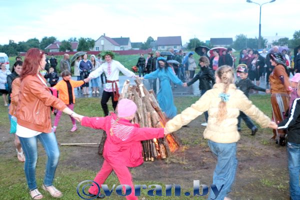 Вечарам у мінулую суботу святкаваць Купалле на Воранаўскім возеры сабраліся мясцовыя жыхары і госці. Але ж вось надвор’е адразу не спрыяла ні артыстам гарадскога цэнтра культуры і вольнага часу, якія распачалі так званае тэатралізаванае прадстаўленне пад дажджом, ні тым, хто імкнуўся прыйсці раней, каб яго паглядзець. Тут і народная прыказка адклад не ідзе ў лад падцвердзіла сама сябе.