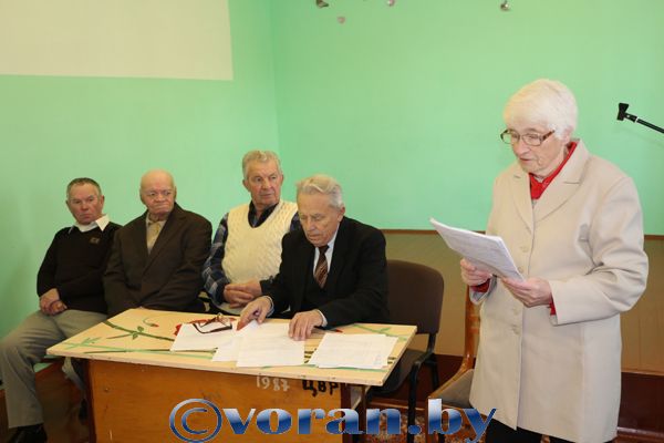 Много ценных предложений по дальнейшей активизации деятельности ветеранов райцентра внесли выступившие на собрании И.А. Харитоник, Л.П. Урбанович, А.В. Мелько, В.Ф. Петюль, А.А. Пашкевич, Н.К. Пушненкова. Заслуживают внимания критические замечания ветеранов в адрес РУП ЖКХ по наведению порядка на гражданских кладбищах, обкашиванию придомовых территорий. Были пожелания и сотрудникам «Воранаўскай газеты».