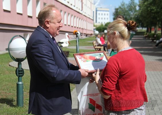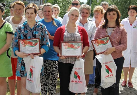 Традицию поздравлять рожениц в столь важный для страны праздник заложила областная организация РОО «Белая Русь». Ее председатель Витольд Пестис сказал немало добрых слов в адрес всех матерей. На встречу также пришли начальник главного управления идеологической работы, культуры и по делам молодежи Александр Версоцкий, председатель Ленинской районной организации РОО «Белая Русь», депутат Палаты представителей Национального собрания Василий Михно и другие.