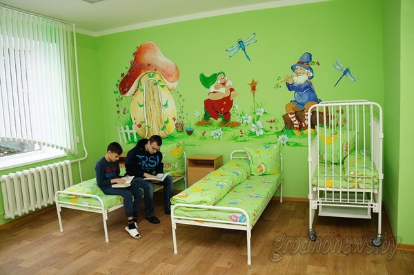 А щучинские художники-волонтеры Светлана Березкина, Ирина Хвойницкая, Елена Сехович и Анна Черняк потратили не одну неделю, расписывая стены учреждения красками и создавая для больных детей красивый мир. Чтобы стены помогали, атмосфера в палатах должна непременно быть позитивной. Помощь в оформлении отделения оказал также Щучинский центр творчества детей и молодежи.