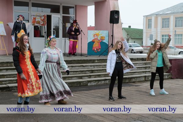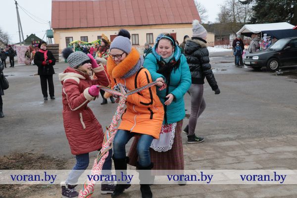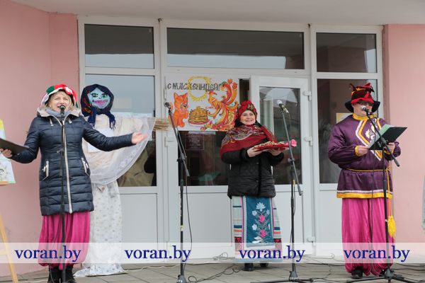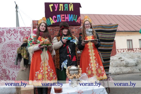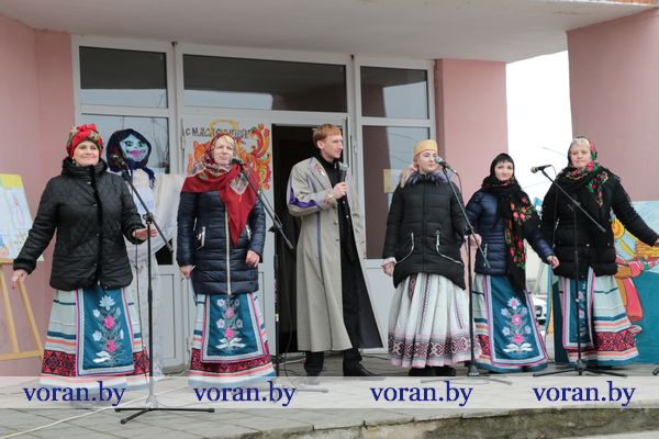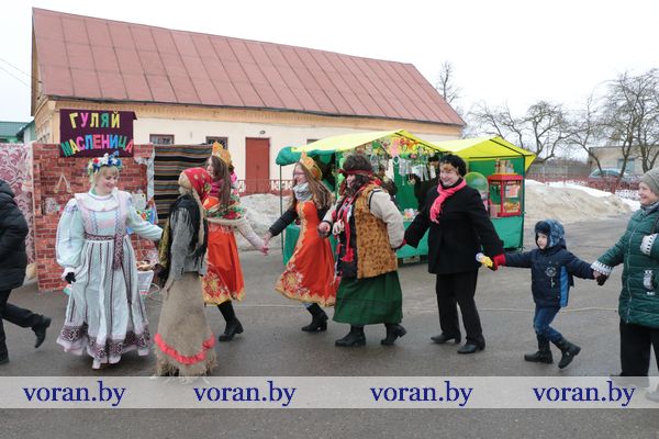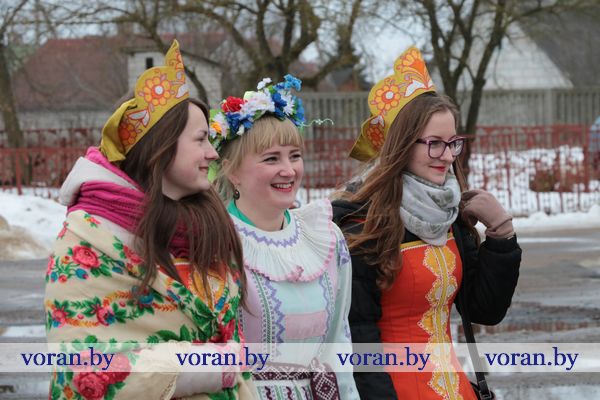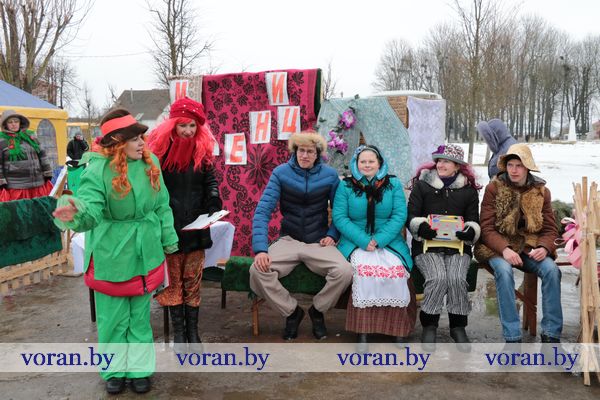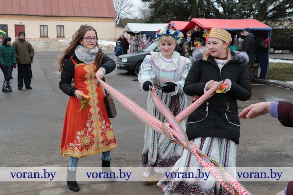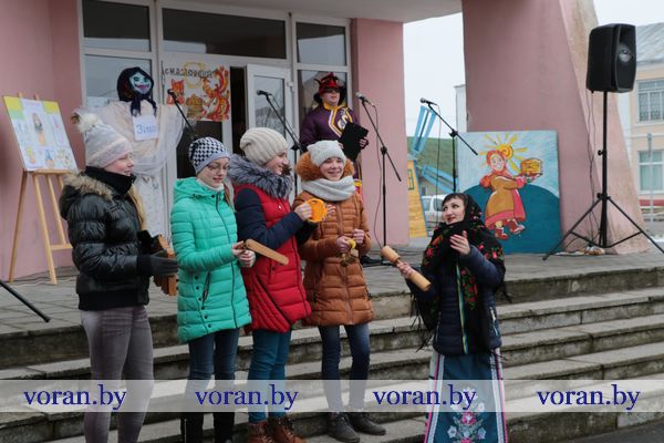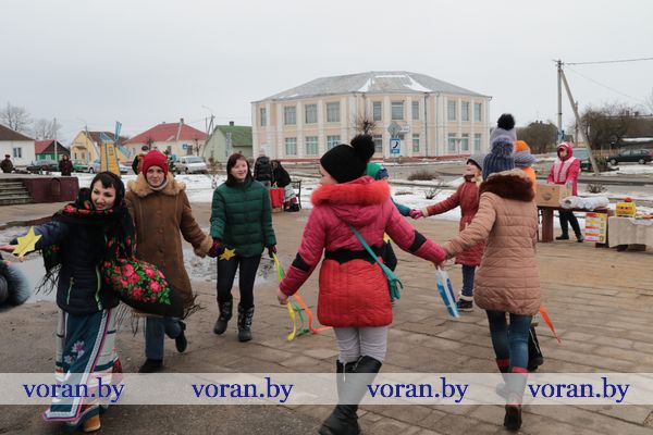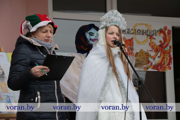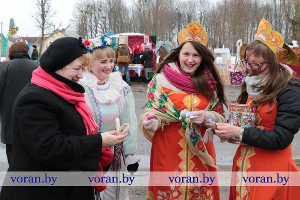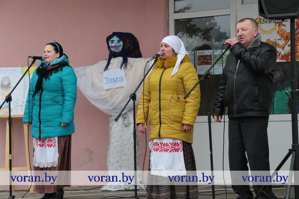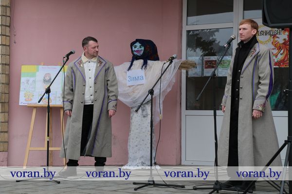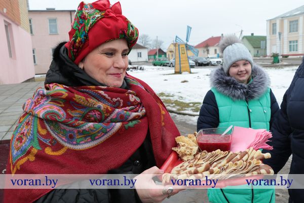 — Усе на свята! Масленіцу сустракаем! Зіму праводзім! Вясну заклікаем! — такімі словамі і вясёлай музыкай 19 лютага поўнілася плошча ў гарадскім пасёлку Радунь. Тэатралізаванае прадстаўленне адкрылі сімпатычныя скамарохі, ролі якіх таленавіта выканалі Тэрэса Банцэвіч і Віталь Адаміцкі. Нават Зіма (Анастасія Куджма) ўжо не змагла напалохаць сабраўшыхся людзей. Бо з-за хмар усё часцей выглядае сонейка, снег імкліва тае, а Вясна (Елізавета Свібовіч) зіме на пяткі наступае: