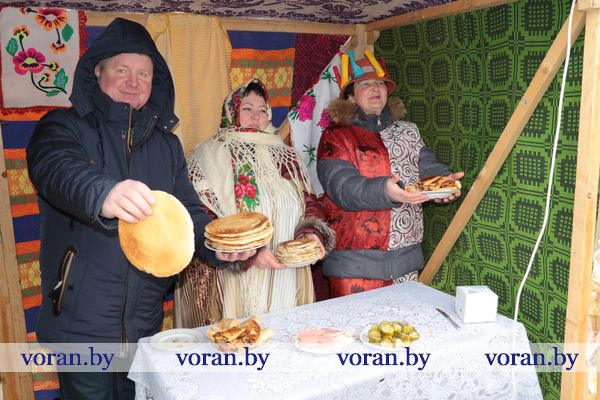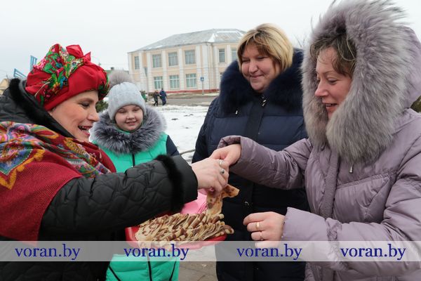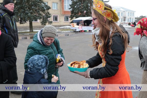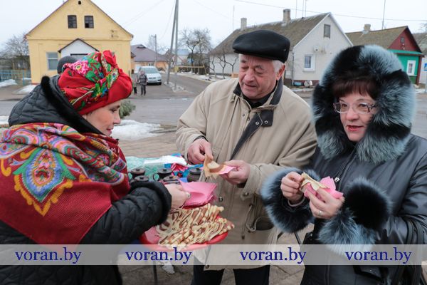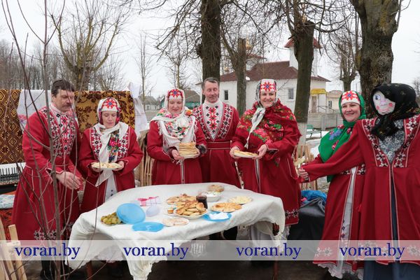 За гэтую доўгачаканую радасць гараджане дзякавалі Вясне шчырымі апладысментамі, а сама Масленіца (Надзя Жэгздрынь) пачаставала яе блінамі з малінавым варэннем. Да густу прыйшліся бліны і ўсім гасцям свята. Дарэчы, бліны са смятанай, мёдам і іншымі прысмакамі былі і на кожным імправізаваным падворку, якія арганізавалі работнікі культуры з Начы, Забалаці, Курчоўцаў і Місявічаў, Больцішкаў, Гіркаў, Жырмунаў…