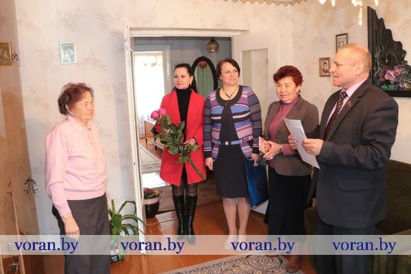 В этом году Валентина Фоминична праздновала 80-летний юбилей. Прекрасным поводом навестить землячку, поблагодарить за многолетний труд экономистом в Вороновской ЦРБ и поздравить воспользовались местная власть и общественные организации. С цветами и подарками пожаловала к ней делегация в составе Виктора Роика — председателя районного Совета депутатов, Нелли Пушненковой — председателя районного совета ветеранов, Елены Ястремской — председателя районного объединения профсоюзов и Валентины Спетелюн — лидера профсоюзной первички Вороновской ЦРБ.