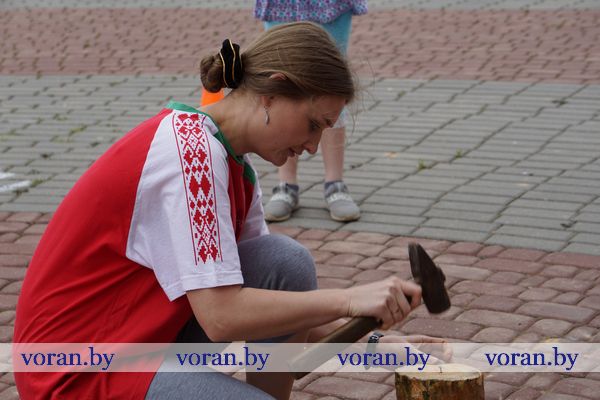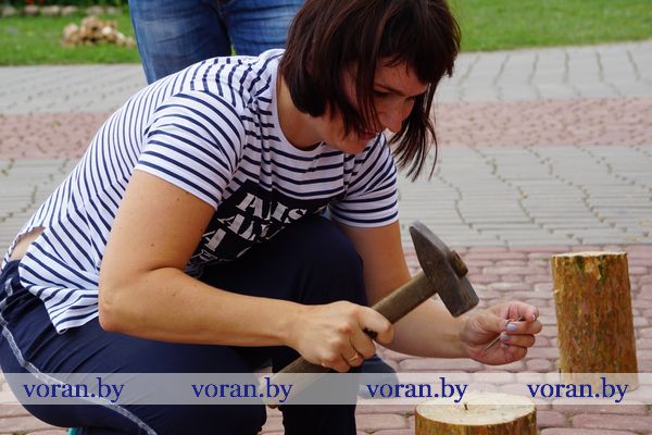Молодые хозяйки продемонстрировали владение молотком в конкурсе «Железная леди», мужчины на глазах у гостей изготавливали разделочные доски.