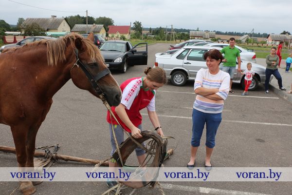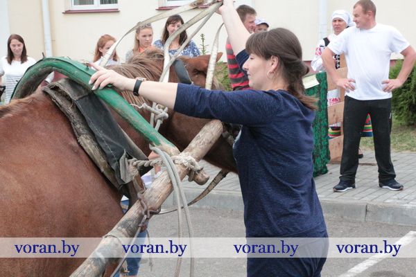 Совсем немного времени было отведено участникам в испытании «Сивка-Бурка». Нужно было последовательно и правильно запрячь и распрячь ездовую лошадь, загрузить и разгрузить воз наполненными мешками. За ошибки в действиях присуждались штрафные баллы. Лошадь Мышка из местного хозяйства терпеливо выносила всю суету вокруг себя.