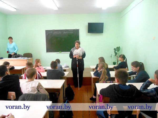 Председатель районной организации БелТИЗ Данута Матыленок вместе с волонтерами общественного объединения организовала для шестиклассников Вороновской школы беседу-тренинг «Протяни руку помощи». Подобные мероприятия уже проходили раньше, и никогда их организаторы не встретились с равнодушием детской аудитории. Ребята живо вступают в диалог, задают вопросы, иногда рассказывают о ситуациях, с которыми им приходилось столкнуться при общении с людьми, ограниченными в физических возможностях, узнают, правильно ли они себя вели. «Чтобы получше понять слабовидящих людей, попробуйте на минутку встать на их место», — предложила Данута Константиновна мальчишкам и девчонкам. Повязки на глазах погрузили участников «эксперимента» в темноту, а трость в руке оказалась для них просто незаменимой «помощницей». Как же сложно передвигаться, ориентироваться, казалось бы, в знакомом пространстве! После этого ребята уже самостоятельно смогли сделать выводы, как окружающие могут помочь слабовидящим людям. Будем надеяться, что встретив человека с белой тростью, они не растеряются, а смогут не только посочувствовать, но и помочь.