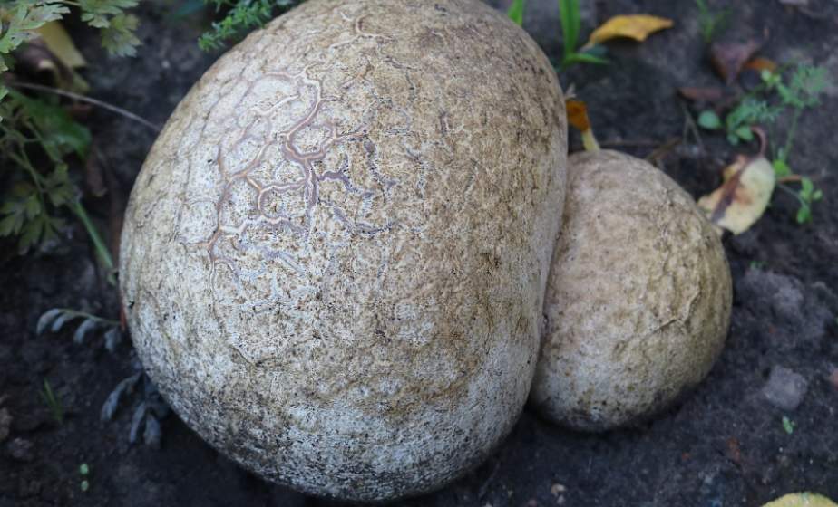 Гриб, как футбольный мяч. На участке жителя агрогородка Можейково вырос головач, занесенный в Красную книгу