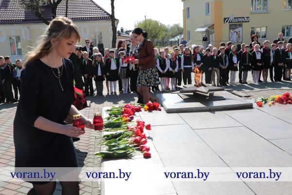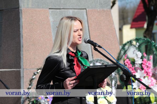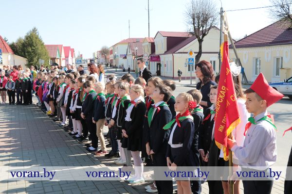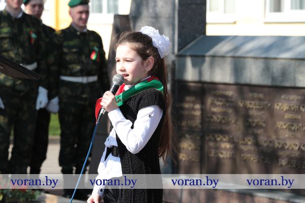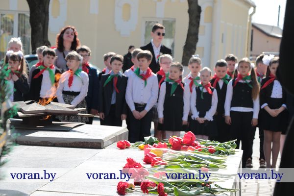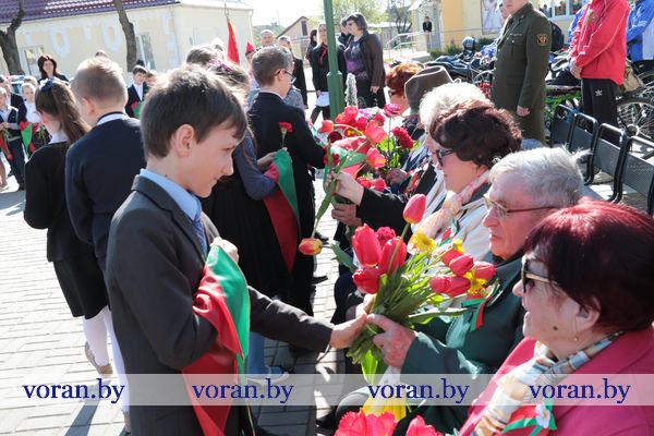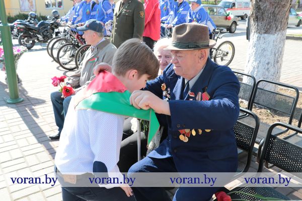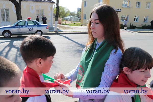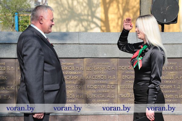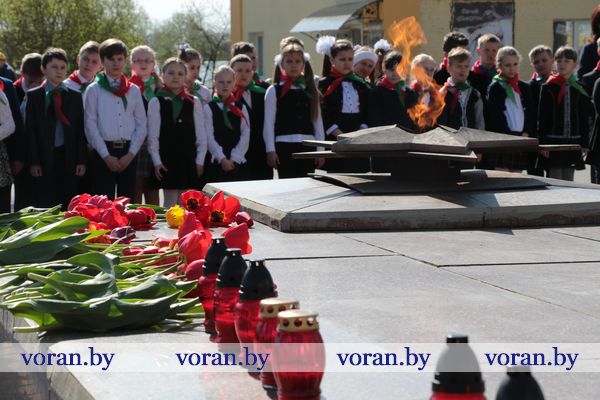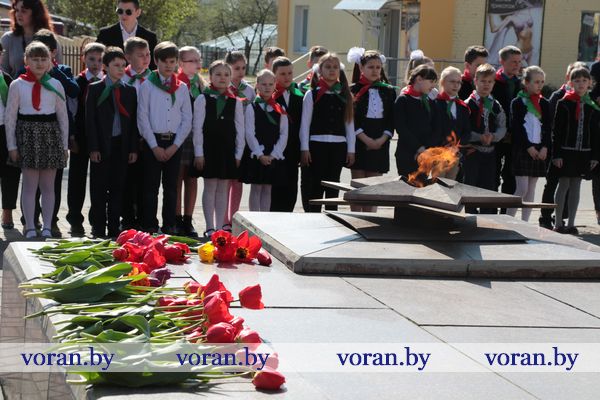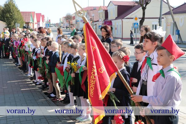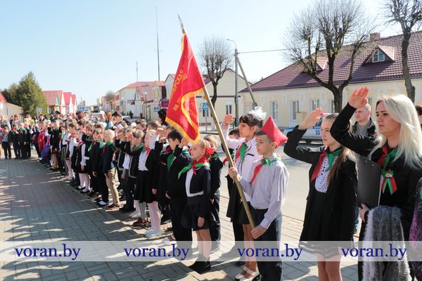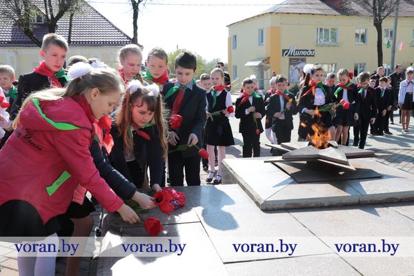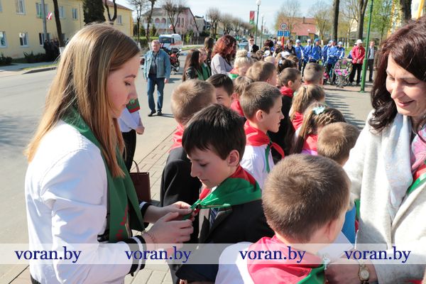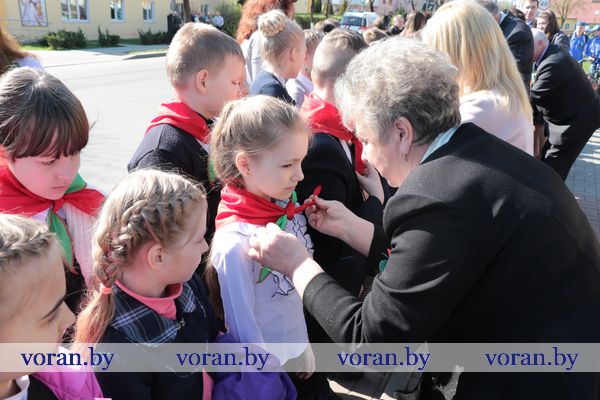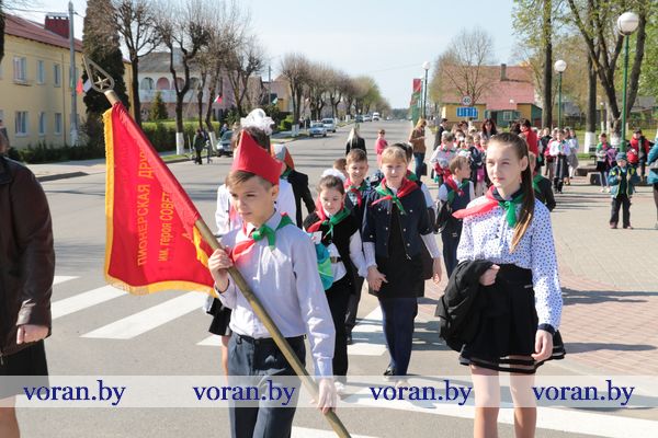 Глубоко символичными стали и торжественные минуты митинга, когда четвероклассникам Вороновской средней школы ветераны, члены райисполкома, активисты БРСМ повязали галстуки Белорусской республиканской пионерской организации. Отныне им, благодарным потомкам героев войны и труда, завещано принять эстафету памяти о Великой Победе. В этом и поклялись юные пионеры во время принятия торжественного обещания и выступившая от имени ребят Ксения Стома.
