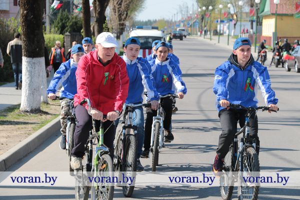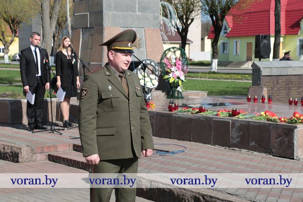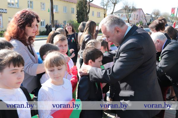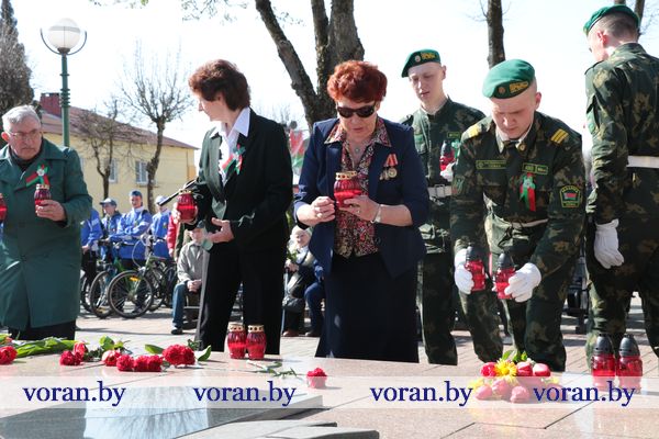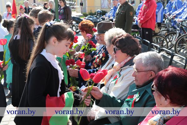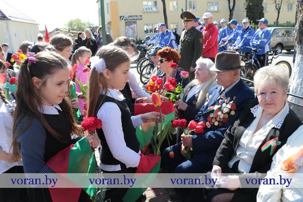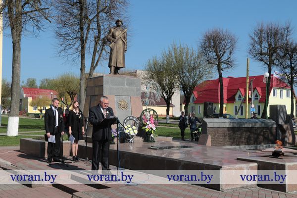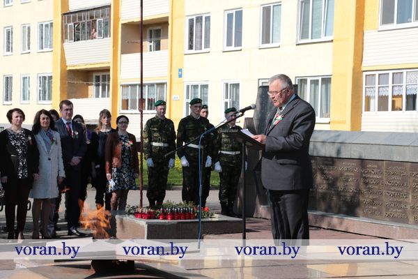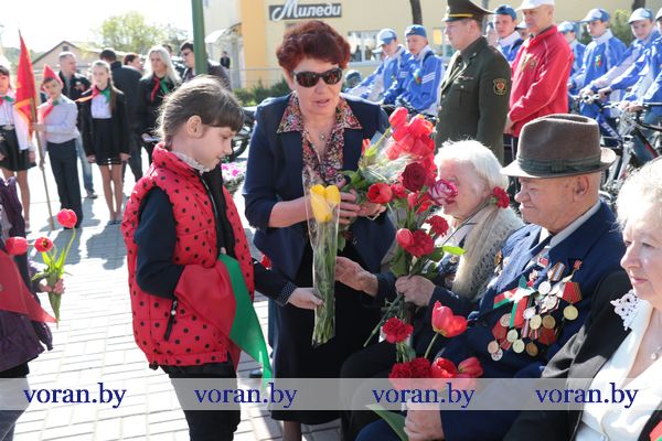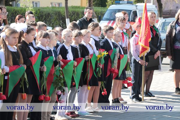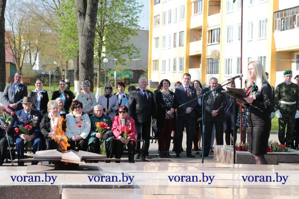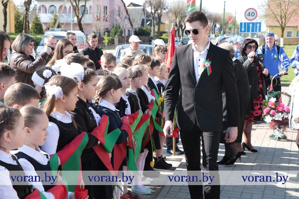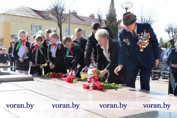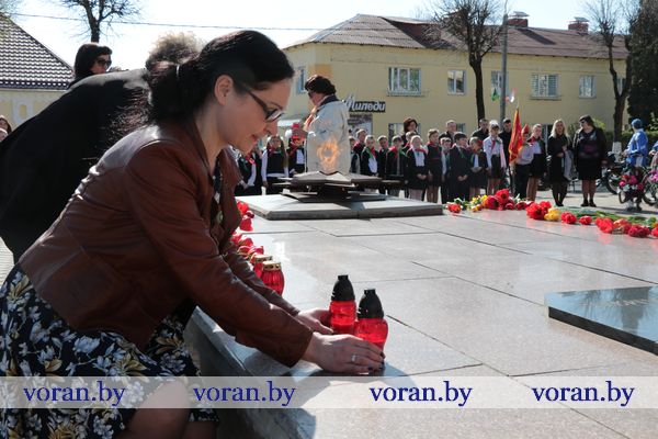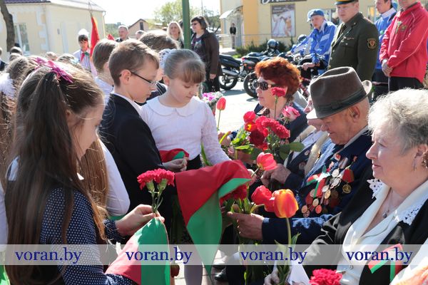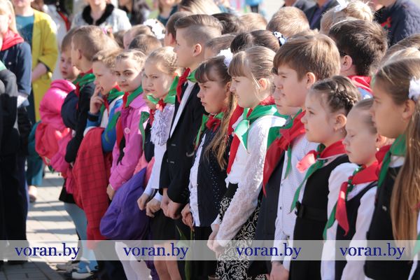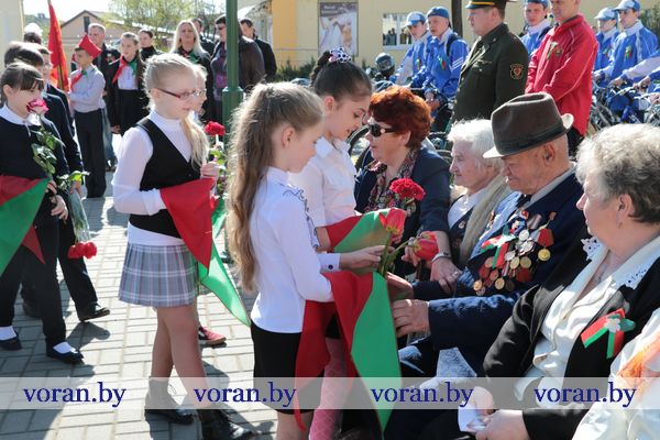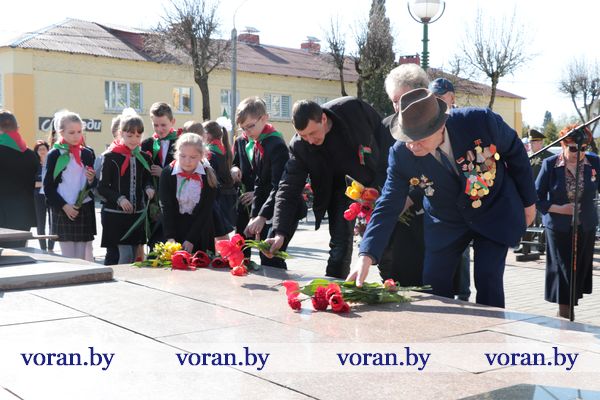 Глубоко символичными стали и торжественные минуты митинга, когда четвероклассникам Вороновской средней школы ветераны, члены райисполкома, активисты БРСМ повязали галстуки Белорусской республиканской пионерской организации. Отныне им, благодарным потомкам героев войны и труда, завещано принять эстафету памяти о Великой Победе. В этом и поклялись юные пионеры во время принятия торжественного обещания и выступившая от имени ребят Ксения Стома.