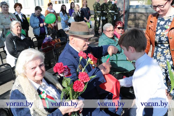 Слова благодарности ветеранам за их военный и трудовой подвиг, пожелания им крепкого здоровья высказала и член Президиума совета районной организации ветеранов Зоя Стефанович, а школьники вручили им цветы.