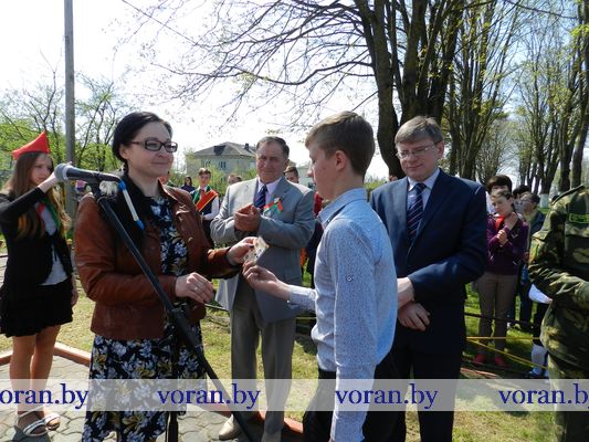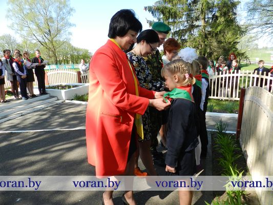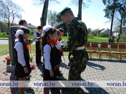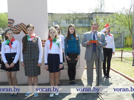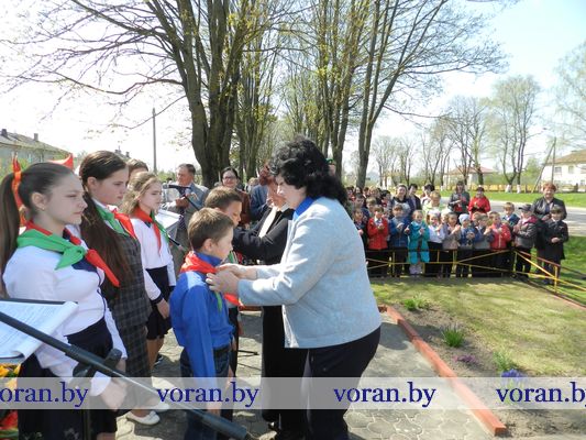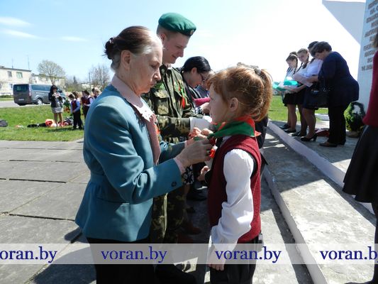По-особому запомнится 6 мая тем ребятам, кому в торжественной обстановке были повязаны пионерские галстуки и вручены членские билеты БРСМ. Знаковым он стал и для погородненских школьников. В митинге у памятника связисток приняли участие свидетели событий того далекого лихолетья — ветеран Великой Отечественной войны Владимир Иосифович Мармыш и бывшая узница фашистского концлагеря Нина Михайловна Красоцкая. Им представители местного хозяйства вручили небольшие подарки. А помощник директора «БелтексОптик» Иван Климович приехал поздравить от лидского предприятия Владимира Иосифовича, над которым оно шефствует. В свою очередь ветеран Великой Отечественной от всего сердца пожелал присутствующим никогда не изведать дорог войны. В этот момент над участниками митинга, расправив крылья, пролетел аист как символ благополучия в семьях, процветания малой родины и мира на земле.