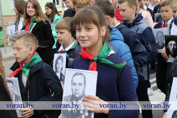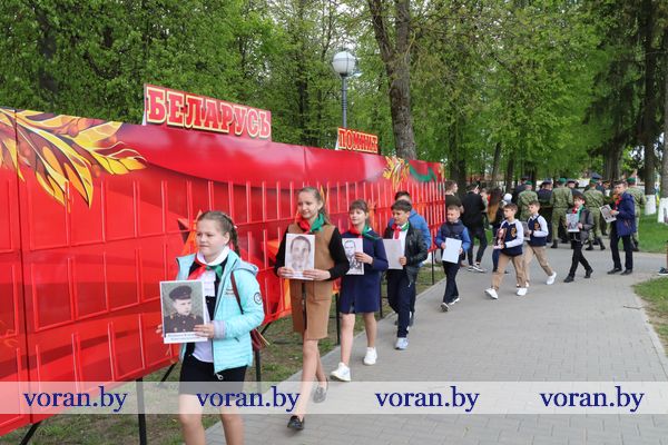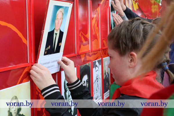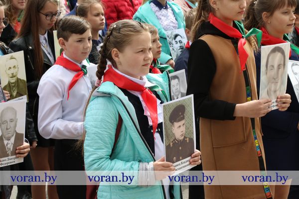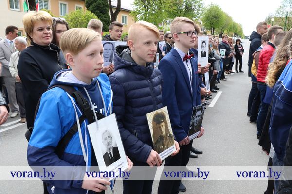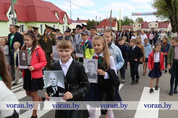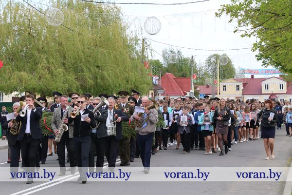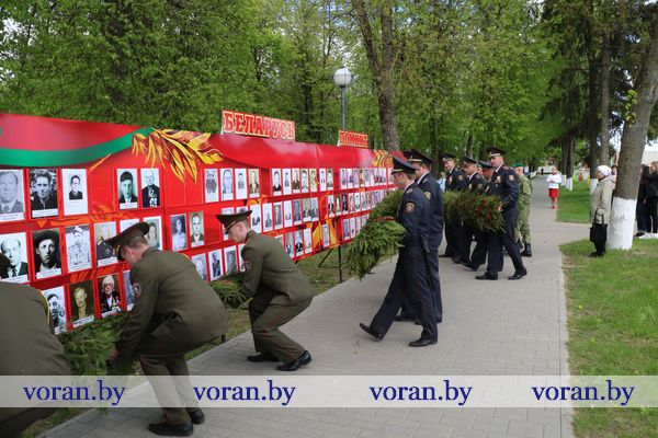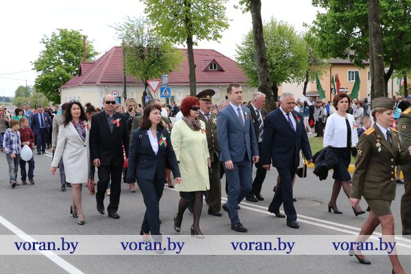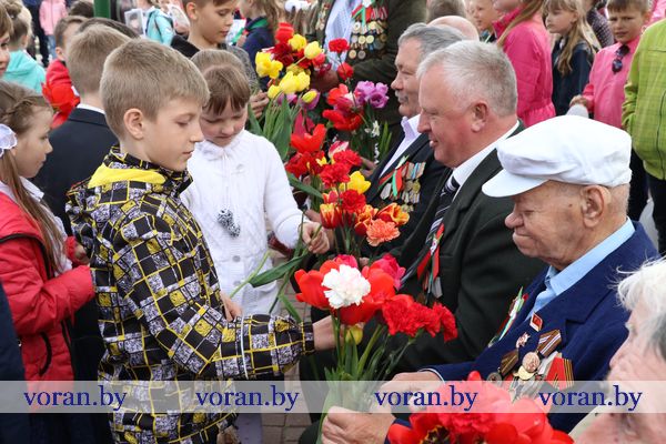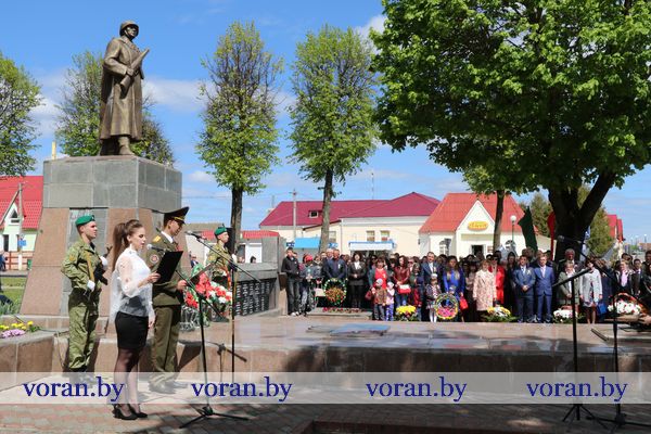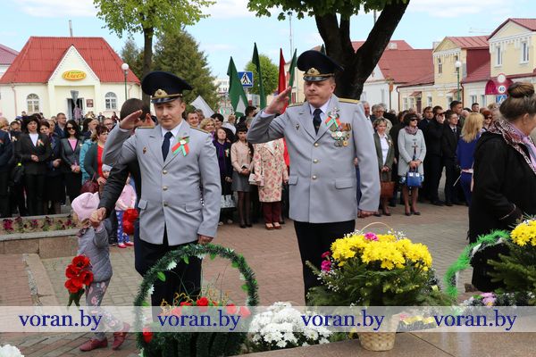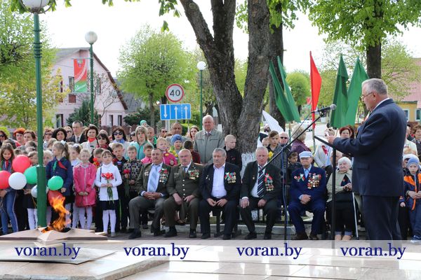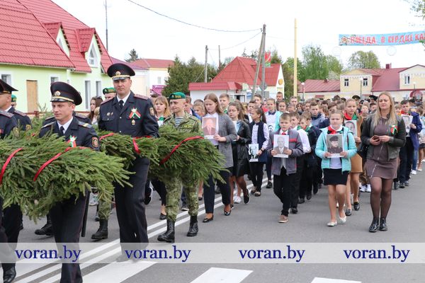 9 Мая — день нашей гордости, мужества и отваги. День памяти и благодарности тем, кто подарил нам мир, весну, жизнь. Он объединил несколько поколений вороновчан: ветеранов Великой Отечественной войны, их преемников — ветеранов труда и воинов-интернационалистов, представителей власти, общественности, организаций и предприятий района, молодежь и детей. В приподнятом настроении с цветами в руках они собрались у памятника погибшим воинам и партизанам, чтобы еще раз засвидетельствовать: в сердцах белорусов не гаснет свет Победы.