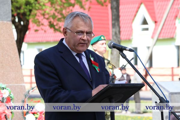 — Мы встречаем 74-ю мирную весну. На родной земле не слышно грохота орудий. Поросли травой блиндажи и окопы. На месте руин и пожарищ поднялись новые города и деревни, — обратился к присутствующим глава района Николай Розум. — Но для белорусского народа, принесшего на алтарь борьбы с фашизмом треть своих сограждан, война никогда не станет далеким прошлым. Она останется не только в памяти поколения победителей, но и в памяти их благодарных потомков. Сегодня мы склоняем головы перед светлой памятью павших героев. Всегда помним о ныне живущих участниках той войны, которые доказали ценой своей жизни, что наш народ способен вынести любые испытания и выйти из них победителем.