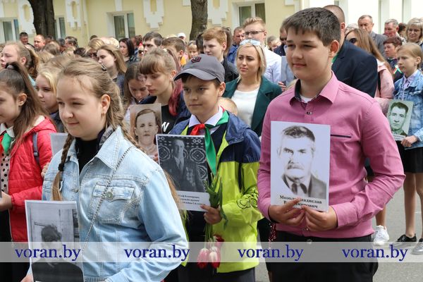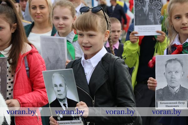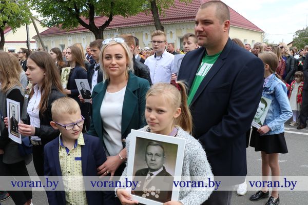 Традиционное шествие под таким девизом продолжило череду праздничных мероприятий. С портретами земляков, родных и близких в городской парк колонной проследовали школьники. Вместе с ними — семья Александра и Весты Мелько из Беняконей, трепетно хранящая память о прадедушке-ветеране войны Петре Васильевиче Хлебко. Не первый год в 9 мая они стараются отложить все свои дела на потом и вместе с детьми отметить знаковый для их семьи праздник.
