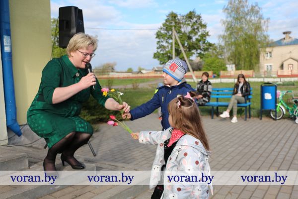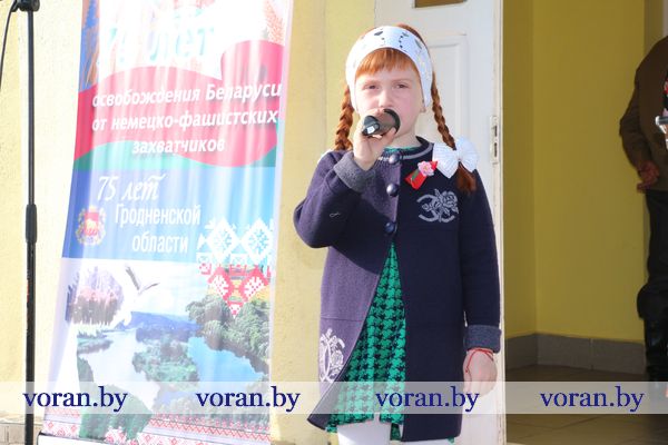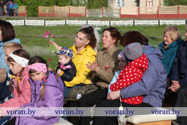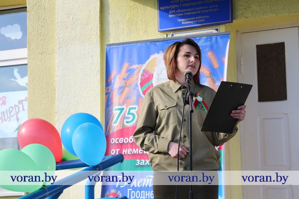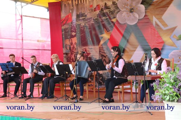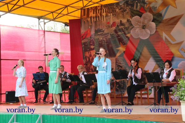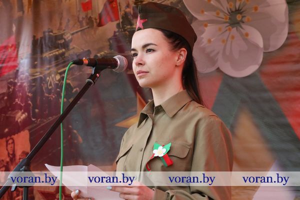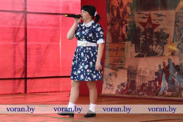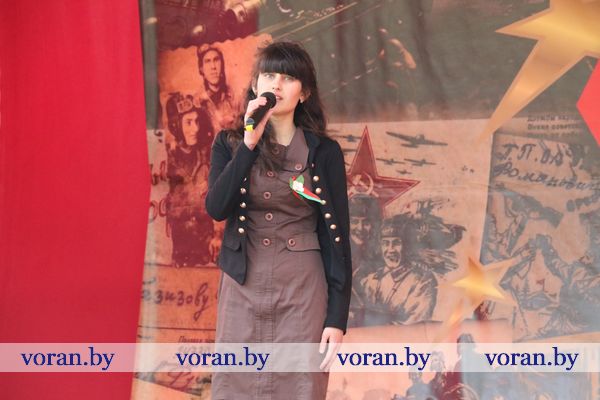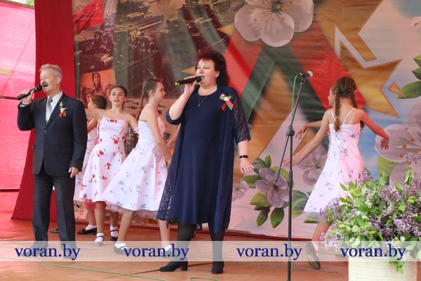 В коротких, пропахших порохом строчках из фронтовых треугольников сержанта Юрия Белова, партизанки-разведчицы Ольги Ржевской, рядового 61-го кавалерийского полка Сергея Созина, Анны Куприяновой мужу Алексею, лейтенанту 222-й стрелковой дивизии, партизана Олега Цуранова, летчика-истребителя гвардии лейтенанта Ларисы Будановой, пилота младшего лейтенанта Василия Буренкова, старшей медсестры Елены Дейчман и младшего сержанта Анатолия Кондратенко своим семьям — дыхание войны, суровых окопных будней, вера в Победу и нежность солдатского сердца. Любовь на поле боя — огромная, неимоверная сила! Об этом и о величии Победы, ценности завоеванного мира в праздничный день рассказывали артисты Вороновского районного центра культуры и народного творчества. Со сцены звучали всем знакомые мелодии и песни в исполнении А. Матюка и Н. Вашкевич, Н. Дюба, А. Мелько, В. Буйновской, А. Кукина, Е. Демьяновой, Е. Лялько, Ю. Стрелинского, Ю. Юзвика, И. Бобрицкого, И. Пресного, инструментального коллектива «Гарэзлівыя струны».