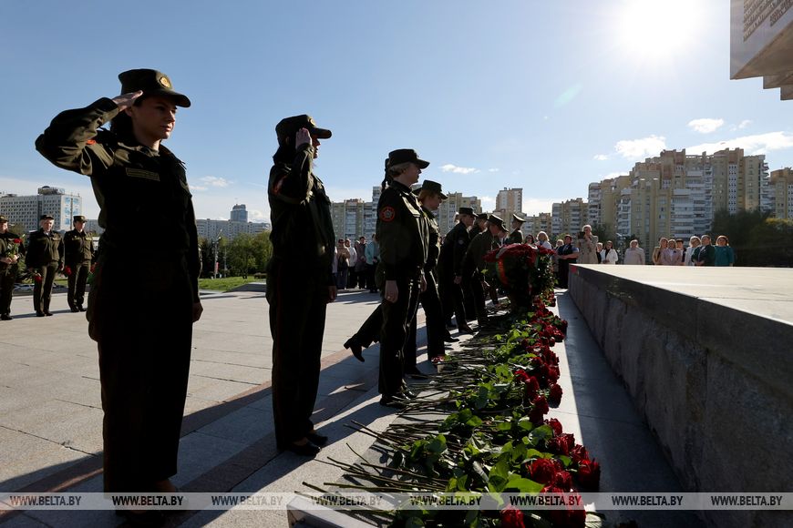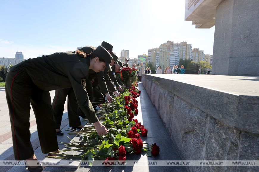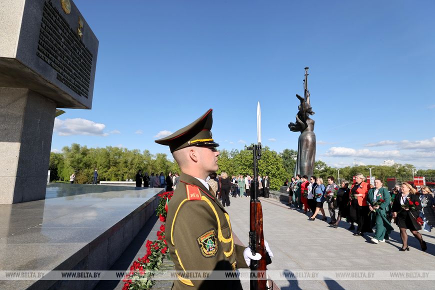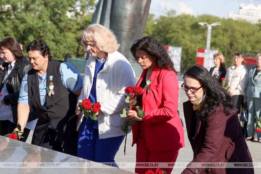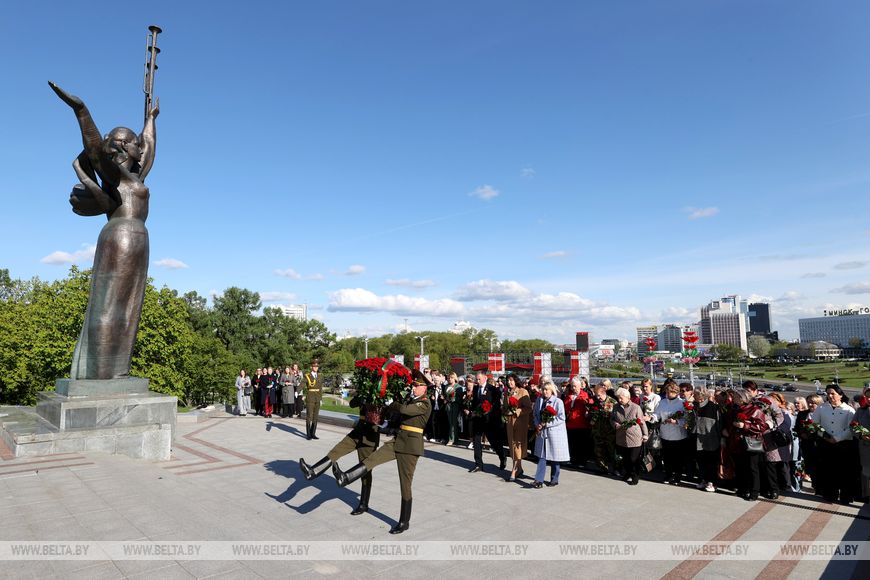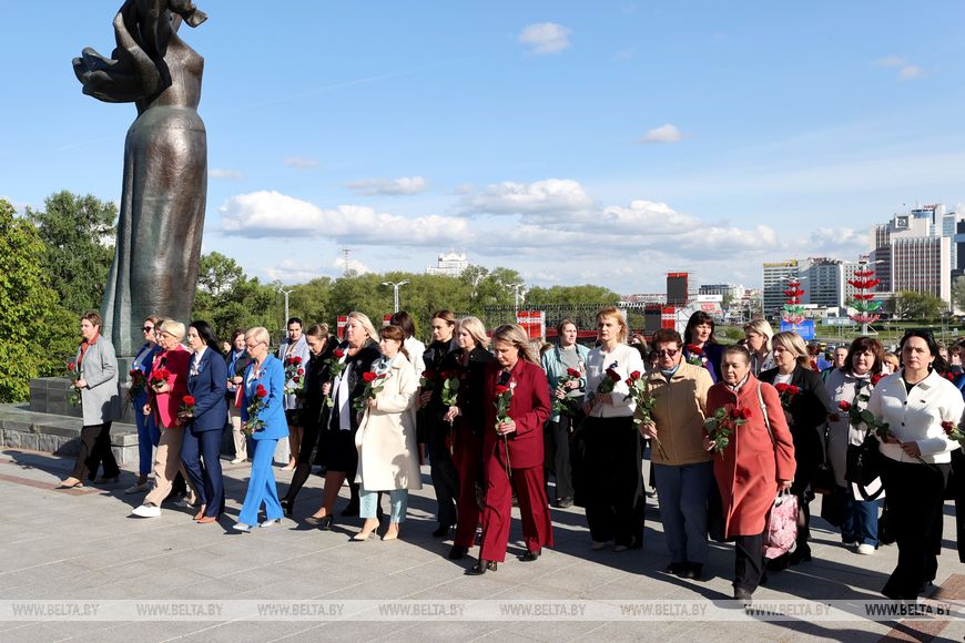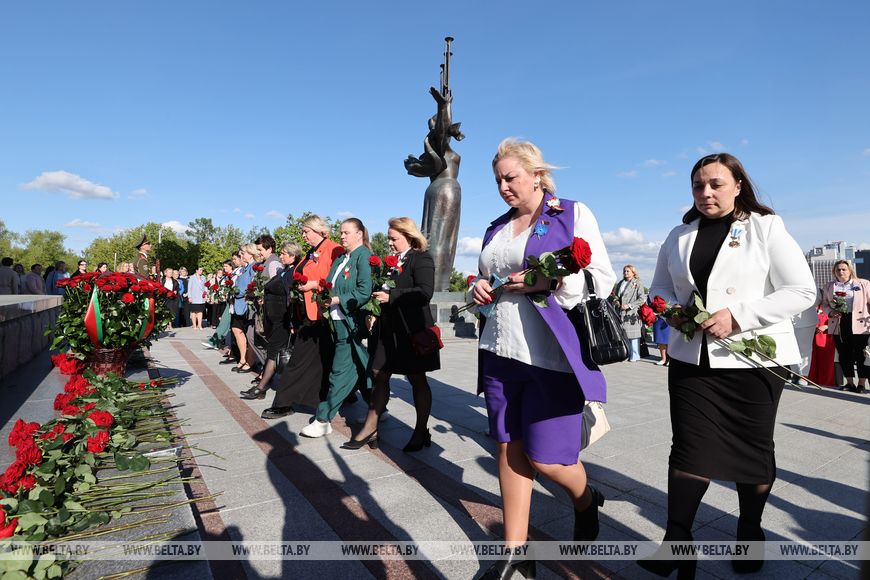 Участники конференции "Женское лицо Победы" возложили цветы к стеле "Минск - город-герой" Великой Победе посвящается 25 апреля 25 180 Участники конференции "Женское лицо Победы" возложили цветы к стеле "Минск - город-герой". Конференция проводилась под эгидой Совета Республики совместно с Белорусским союзом женщин.-0- Фото Максима Гучека https://belta.by/