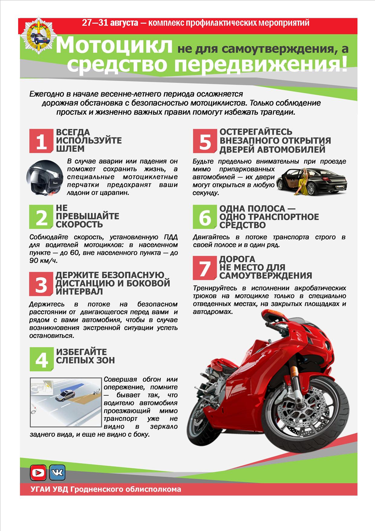 На территории области сохраняется высокий уровень аварийности с водителями мотоциклов и велосипедов. За семь месяцев текущего года с участием водителей мотоциклов произошло 27 ДТП, в которых 1 человек погиб (Вороновский район) и 27 получили ранения (за аналогичный период 2017 года – 18, 2 и 18 соответственно). По вине мотоциклистов совершено 16 происшествий (10). С участием велосипедистов в текущем году зарегистрировано 16 наездов, в которых 3 человека погибли и 14 ранены (за аналогичный период прошлого года - 16, 3 и 13 соответственно). По вине велосипедистов произошло 8 ДТП (13). Со стороны мотоциклистов и велосипедистов с начала года пресечено соответственно 1192 и 2866 нарушений.