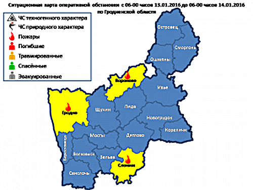 13.01.2016 г. в 15.09 поступило сообщение о пожаре в жилом доме в д. Поволока Вороновского района. В результате пожара повреждено имущество, перекрытие, закопчены стены и потолок в жилом доме. Причина пожара устанавливается. Рассматривается версия нарушения правил эксплуатации печей, теплогенерирующих агрегатов и устройств.http://mchs.gov.by/