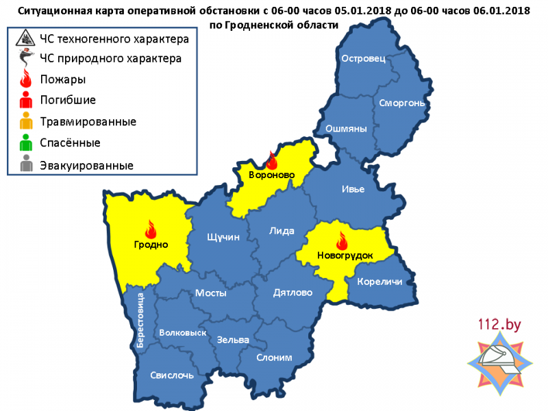 05.01.2018 в 20-54 поступило сообщение о пожаре хозяйственной постройки на территории частного домовладения в д. Иоткишки Вороновского района. В результате пожара уничтожены кровля и перекрытие, повреждены стены. Причина пожара устанавливается.