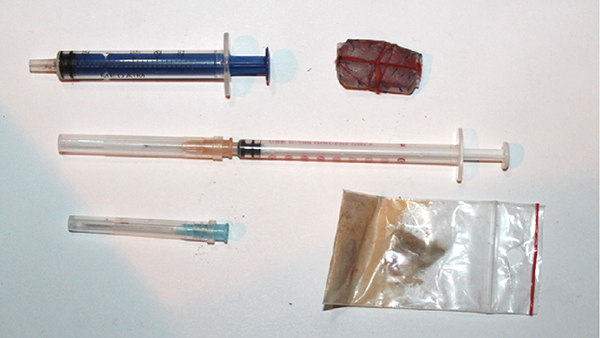 В ходе проведения досмотра транспортного средства был обнаружен пакет с ватным тампоном с наслоением вещества бежевого цвета, два полимерных шприца с иглами и защитными колпачками, а также сверток с веществом красного цвета весом более 0,1 г, которое является особо опасным психотропным веществом, — амфетамином.