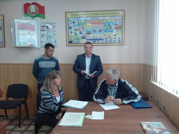Изучали состояние этой важной работы технический инспектор труда Гродненской областной организации Белорусского профсоюза работников здравоохранения Владимир Заблоцкий, главный инженер по охране труда райсельхозпрода Максим Мицкевич, а также председатели районного объединения профсоюзов и РК профсоюза работников АПК Елена Ястремская и Леонид Адамонис.