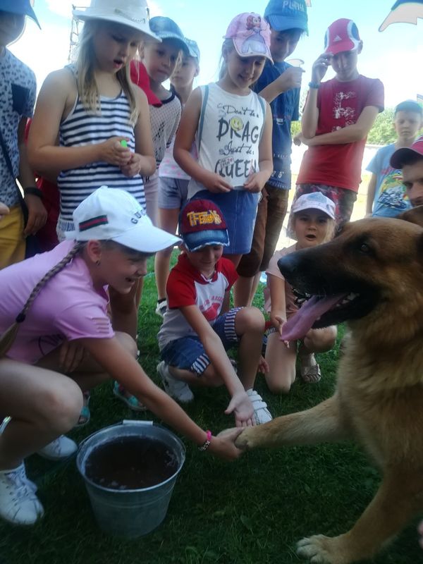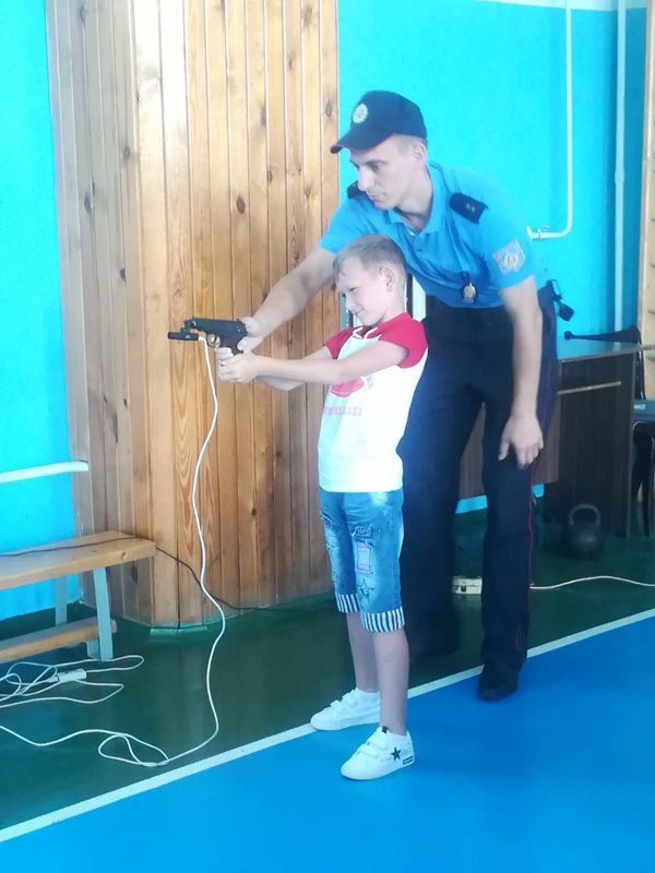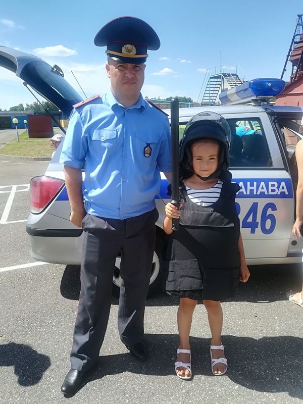 Пожалуй, самым запоминающимся для детей стало знакомство с милиционером-кинологом Александр Кичко и его служебно-розыскной собакой Гримм. Ребята с восторгом наблюдали, как умное животное четко выполняет команды, преодолевает полосу препятствия и задерживает «преступника». Чуть позже многие воспользовались возможностью выстрелить из пистолета Макарова на учебно-тренировочном комплексе «Скат», примерить специальные средства защиты (бронежилет, шлем), посидеть за рулем служебного автомобиля.