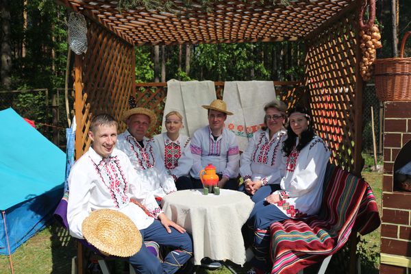 Having arrived at the place of destination beforehand, the teams took up arranging everything as interesting as possible. They didn’t forget about tents, a first- aid kit and a fire extinguisher. But everybody had their own ideas. “Dreamers” took care of those who would like to sunbathe and made a lounger. “Adrenalin – 2” is always glad to meet guests – they made swing for them. “Roots” made up a picturesque Belarusian corner. Everything is ready, it’s time to start.
