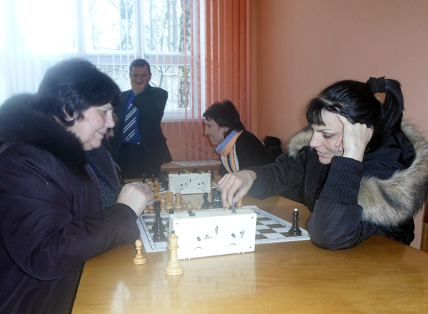 На снимке: за шахматной доской М. Чернявская (слева).