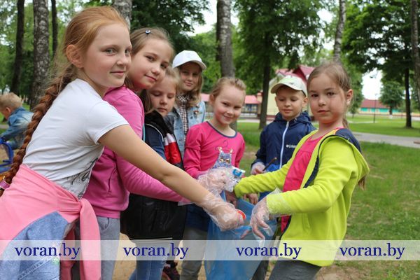 Два лагеря образовали две команды и с азартом старались проявить себя, чтобы одержать победу в «Экомарафоне». Юным туристам пришлось доказывать свою готовность к путешествию знанием правил поведения на природе, внимательностью и наблюдательностью. Творчество тоже пригодилось в дороге: мальчишки и девчонки очень старались, чтобы «экостихи», «экоплакат» были не только интересными, но и поучительными. Игры, конкурсы, задания — все было для того, чтобы ребята исследовали каждый листочек, травинку, камушек… Одним словом — природу. В завершение все надели перчатки и отправились наводить порядок на игровой площадке в городском парке г.п. Вороново.